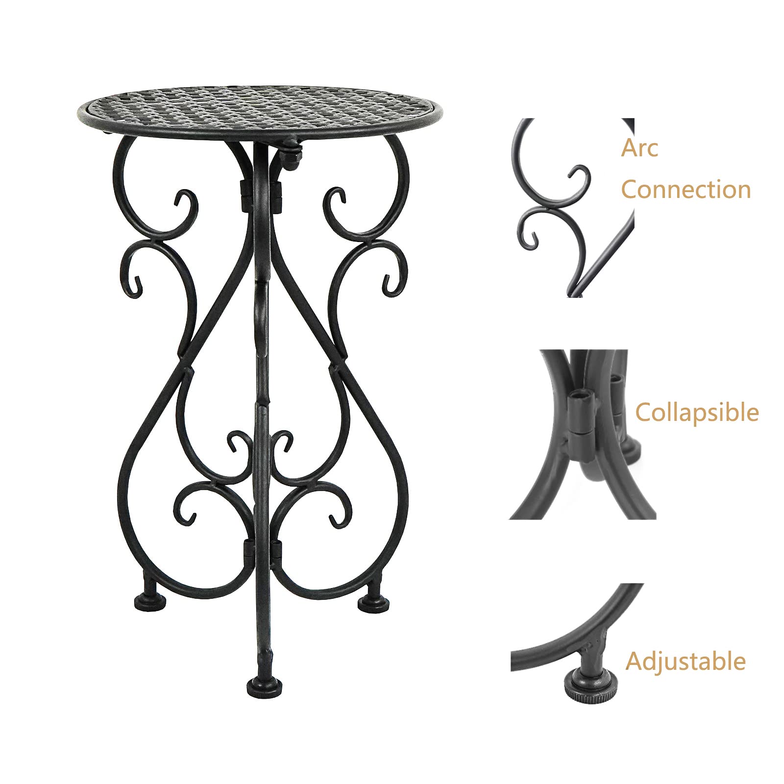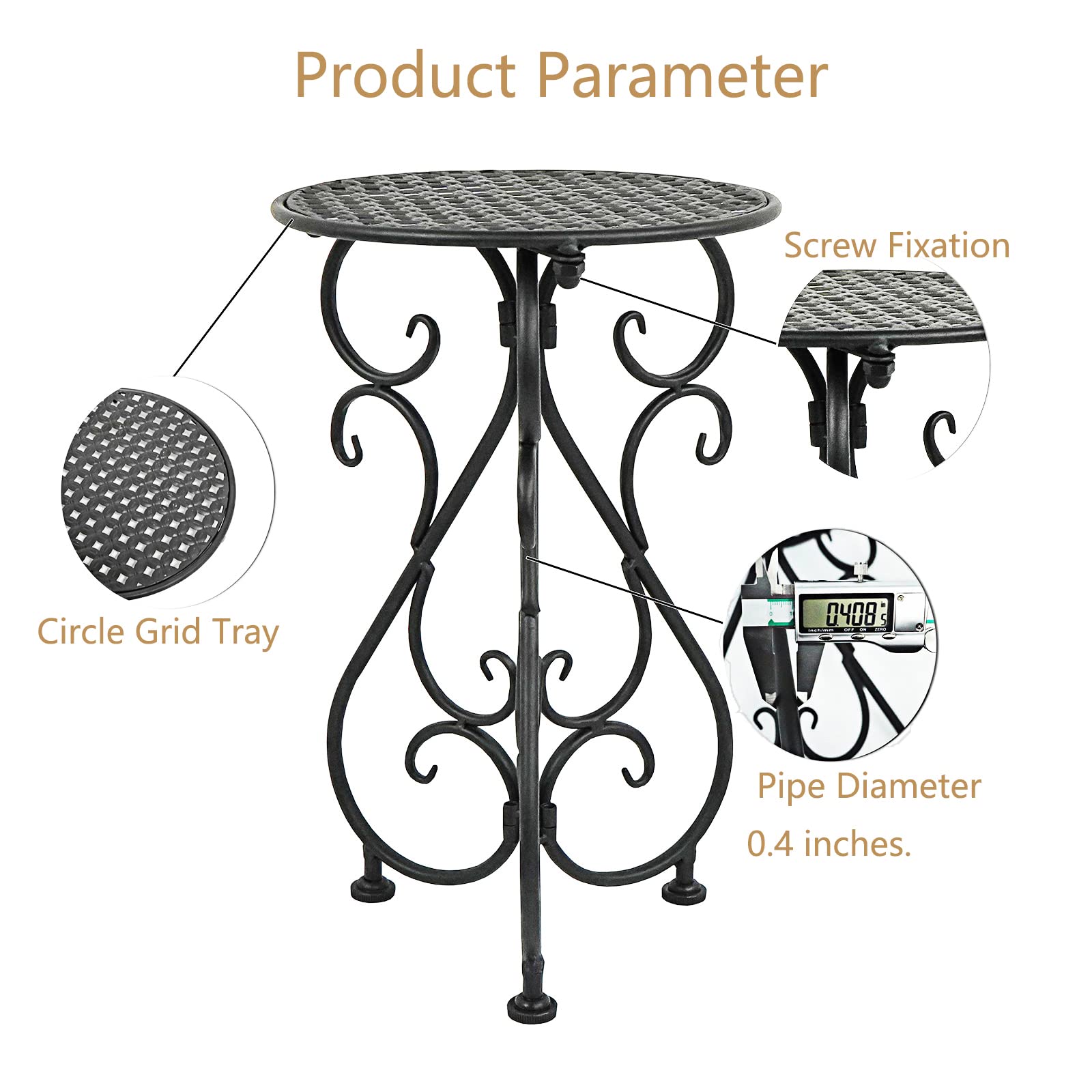 • 【Metal Material】This plant rack made of 100% cast iron, with a smooth matte finish, waterproof and rustproof. The circle grid table top can make the potted more absorb sunlight, it is suitable for 1 inch - 11 inch medium or small size flower pot. No pots and plants.