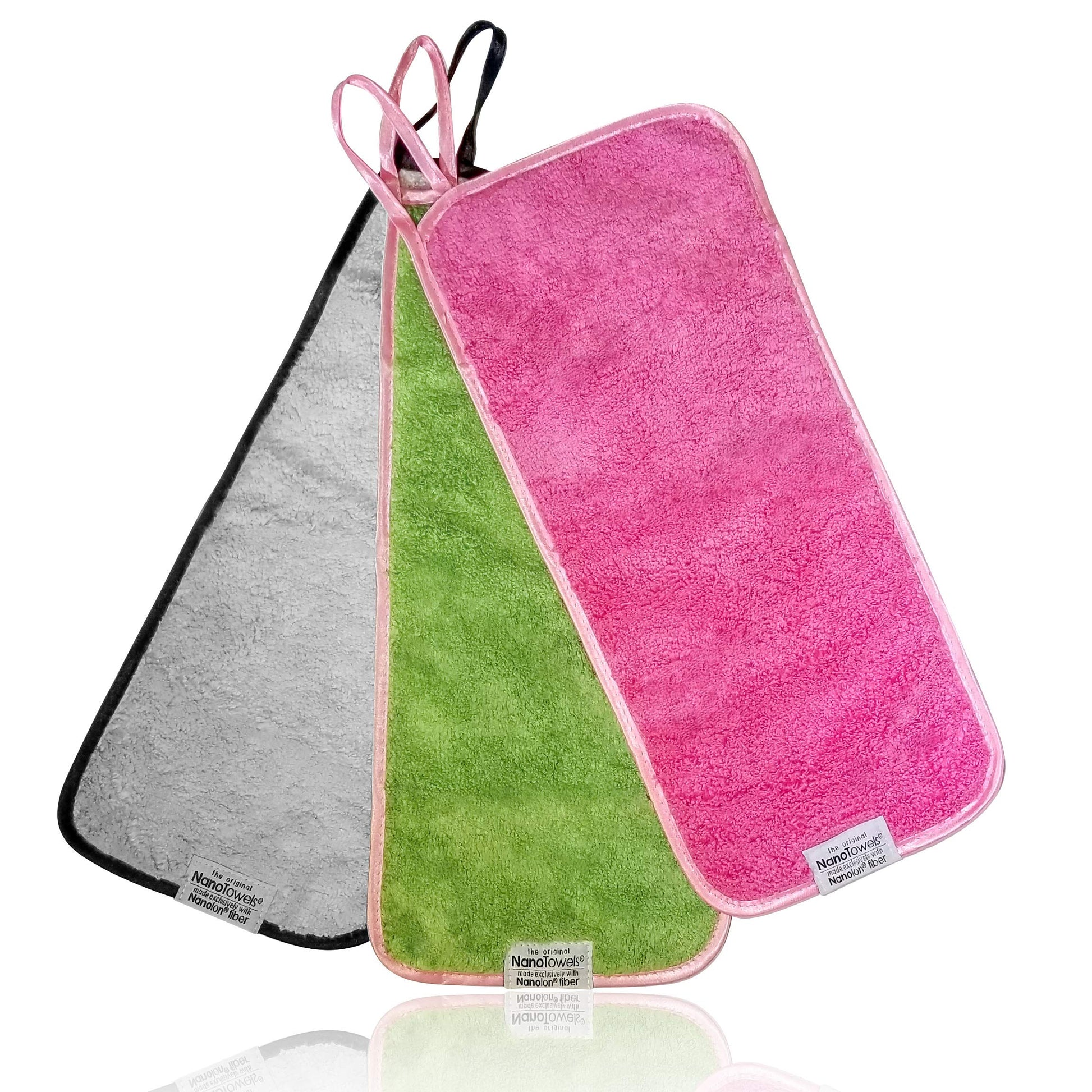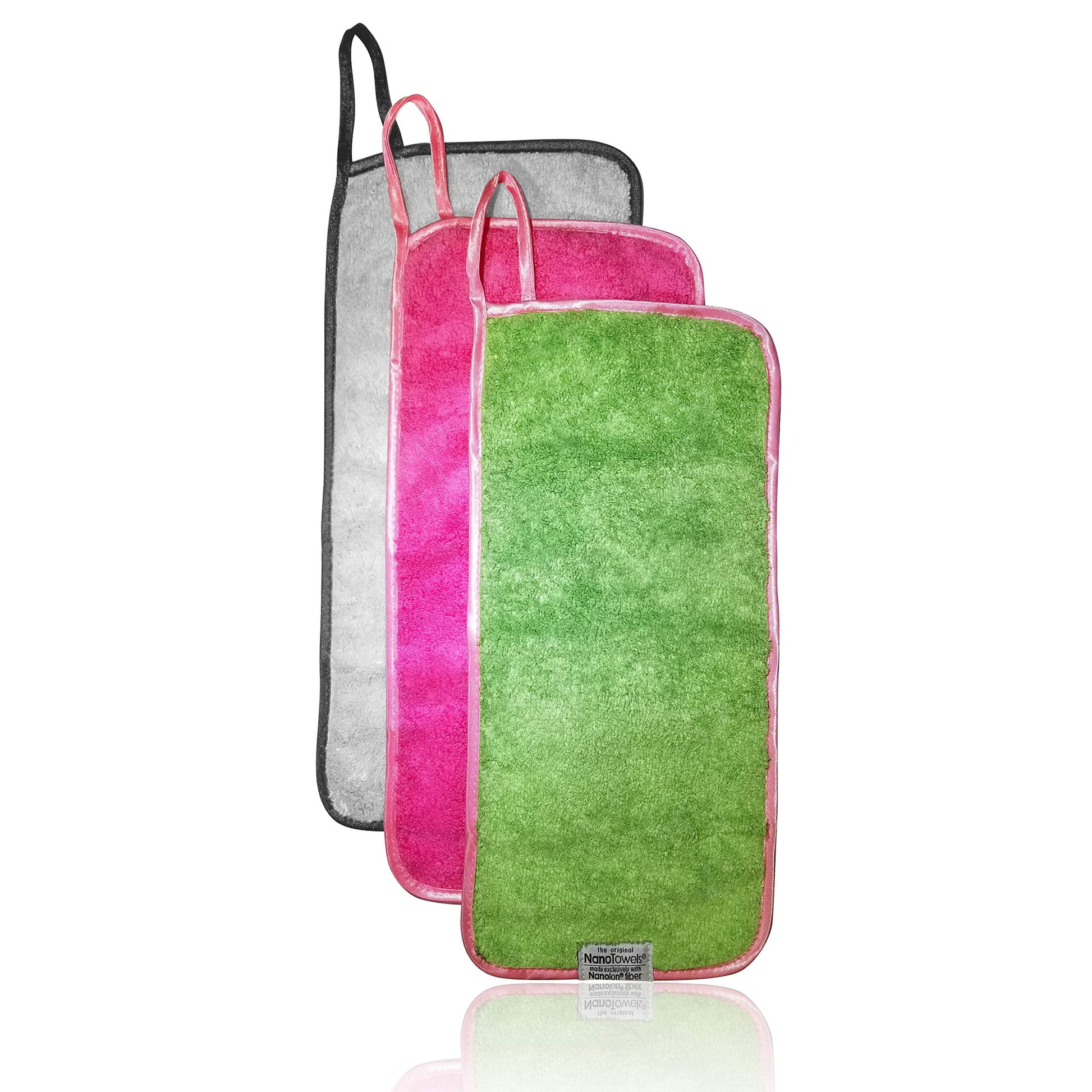 Nano Towel Makeup Remover Face Wash Cloth Multi Color 3-PACK. Remove Cosmetics FAST and Chemical Free. Wipes Away Facial Dirt and Oil Like An Eraser. Great for Sensitive Skin, Acne (Grey, Pink, Green)
