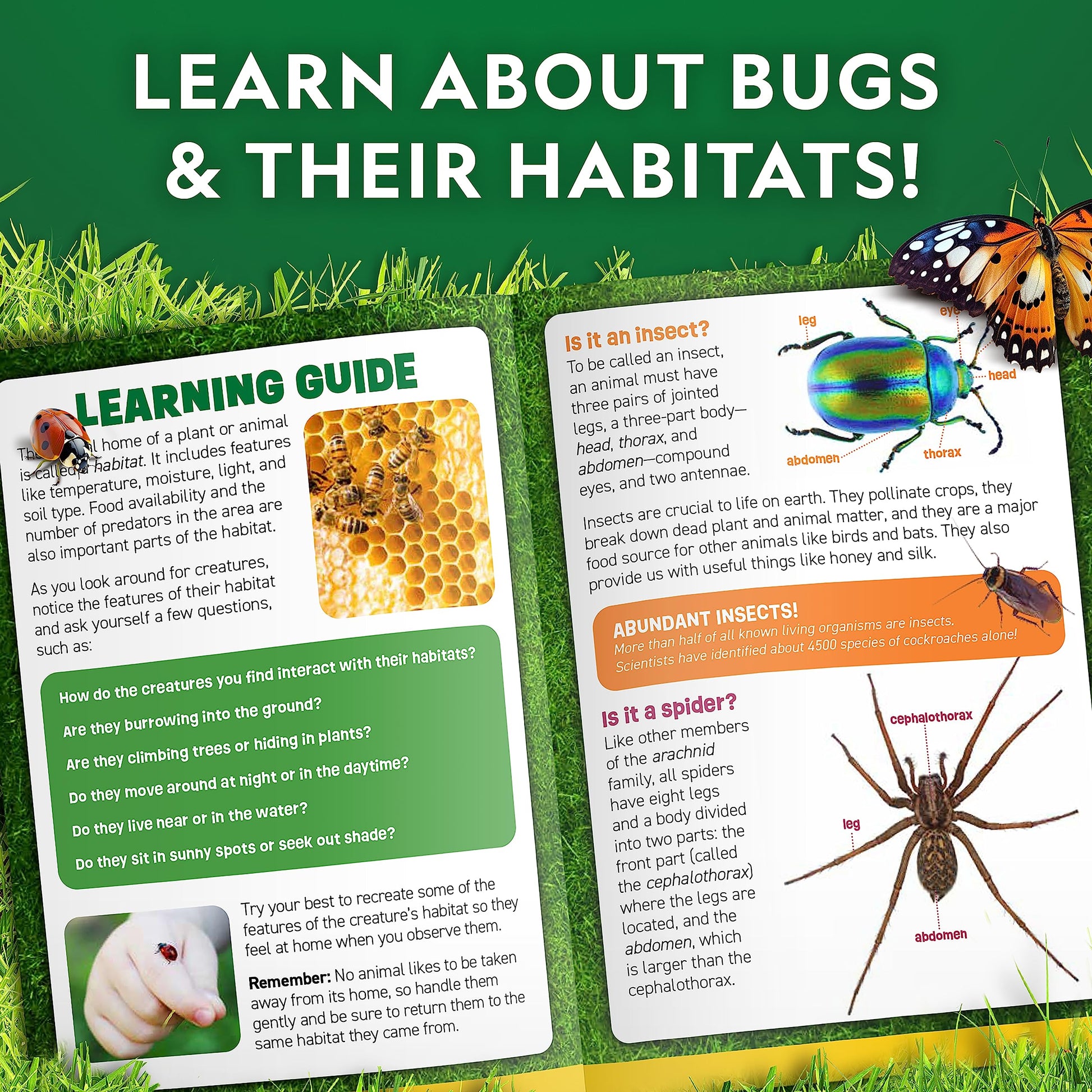 • CATCH BUGS & OBSERVE THEM UP CLOSE - With this bug catcher and habitat kit, kids can capture bugs and insects, then watch them through the habitat's magnified viewers. The bug catcher, tweezers, and net make it easy to catch bugs of all types.