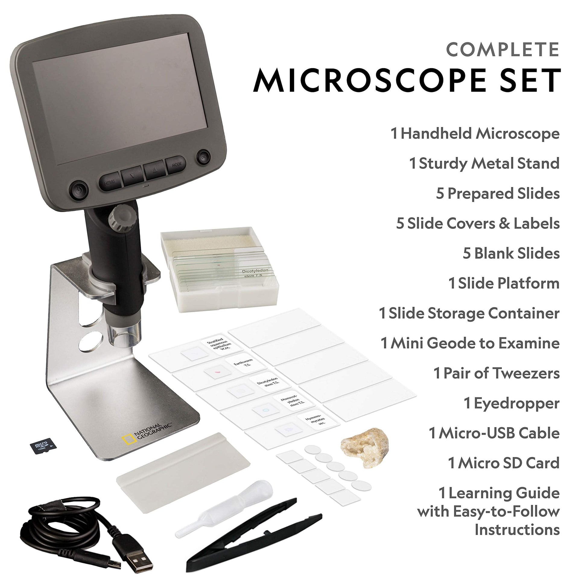 National Geographic Digital Microscope for Kids – 40-Piece Handheld Microscope, Lightweight, Portable, Capture 1080p Photos & Video on Micro SD Card, Tilting 4.3-Inch LCD Screen, 800x Magnification