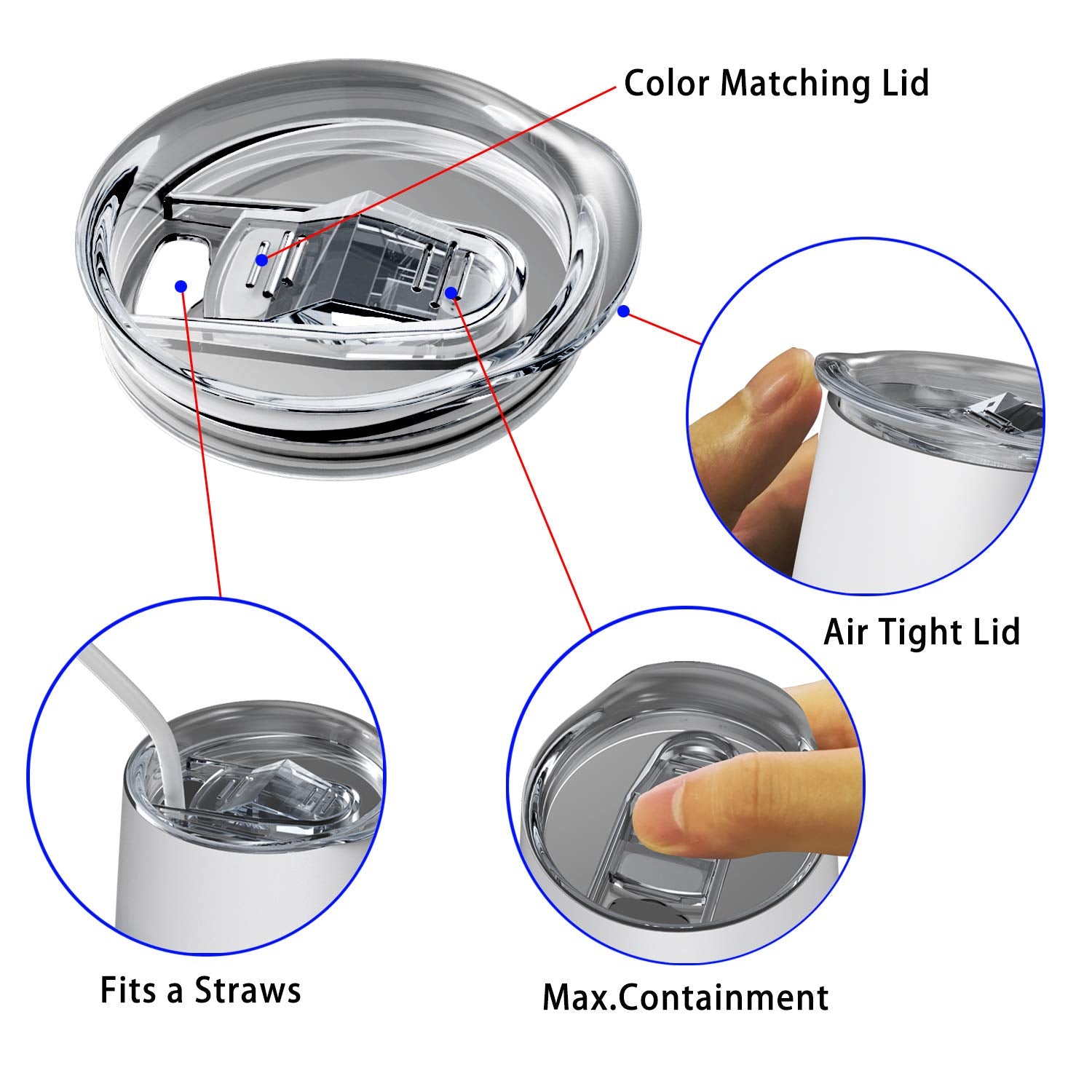 • 【ENJOY WORRY-FREE】The surface of the lid has a straw hole design, which can be used for sipping or using a straw to reduce splashing.Tipping cups over really "spills" all the fun. Unlike others, our silicon-enclosed slider lid secures your drink even upside down, preventing foreign bodies getting into drinks.