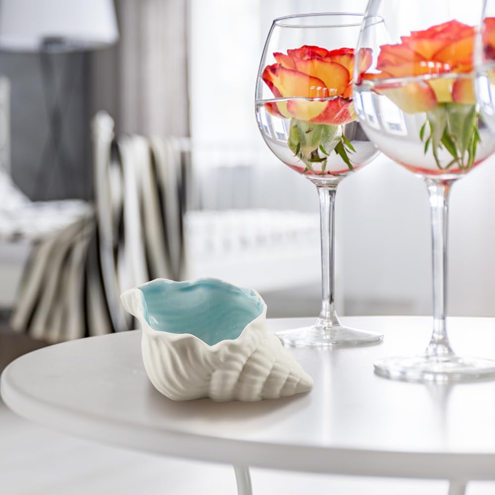 NBEADS Conch Shape Ceramic Jewelry Tray, Aqua Shell Trinket Dish Ceramic Ring Earring Holder Ocean-themed Decorative Trinket Plate for Rings Earrings Necklaces Bracelet Jewelry Watch Keys