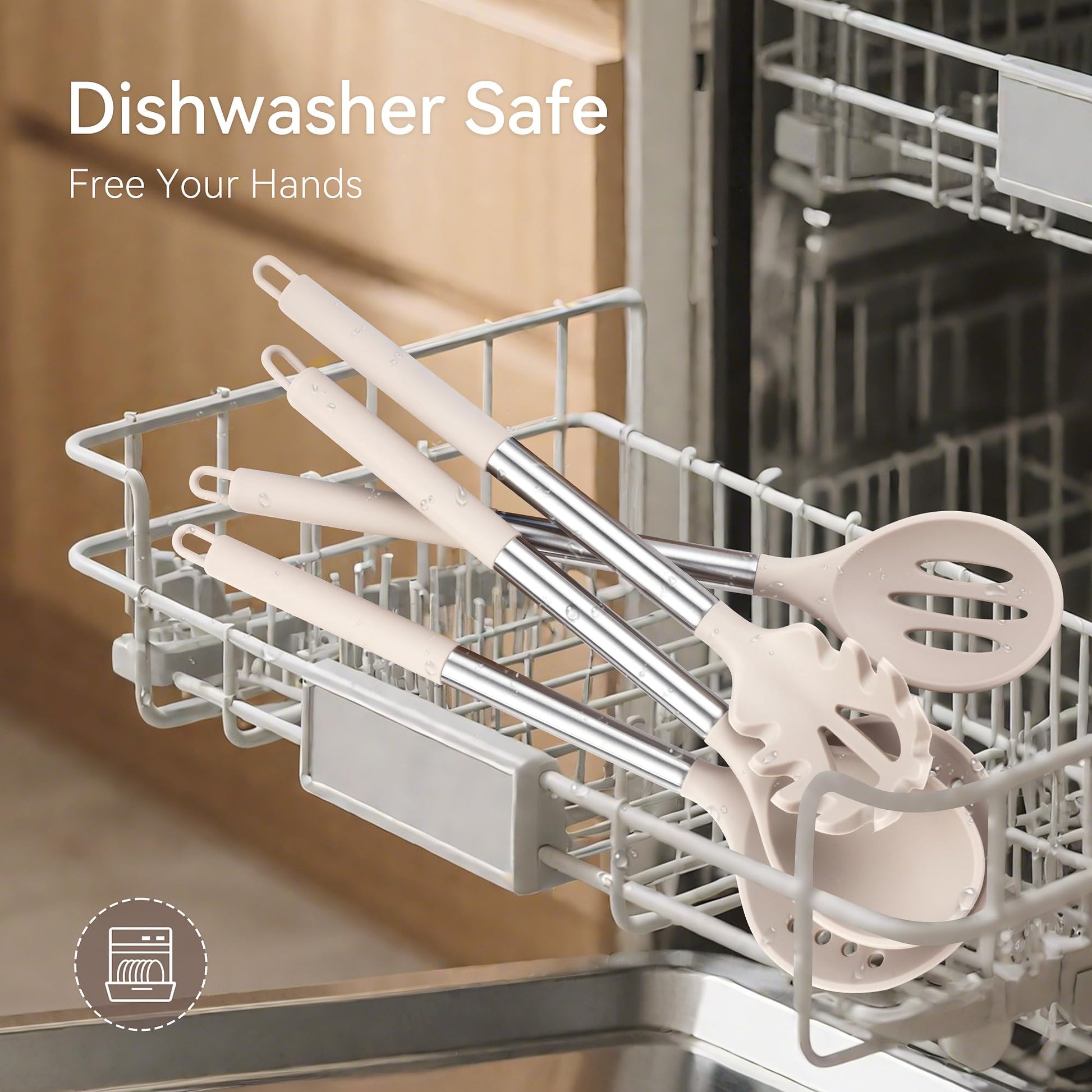 • EASY TO CLEAN, DISHWASHER SAFE: This quality kitchen silicone utensil set is easy to clean. To clean these silicone cookware simply rinse gently with warm water or throw in the dishwasher