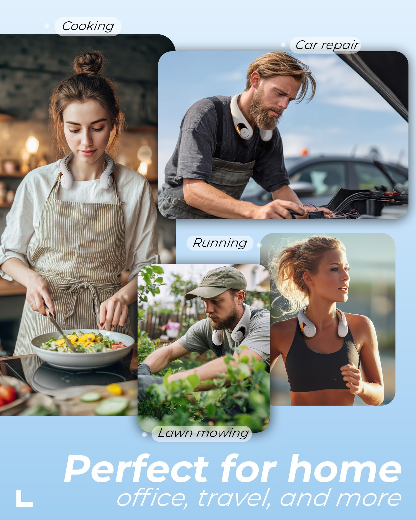• Customized Cooling Experience: 3 adjustable speed settings for personalized comfort, operates with low noise. Equipped with a copper brushless motor, reaching speeds up to 4100 RPM and wind speeds up to 4.8 meters per second, 360°surrounding cooling wind for the entire face around, providing efficient cooling.
