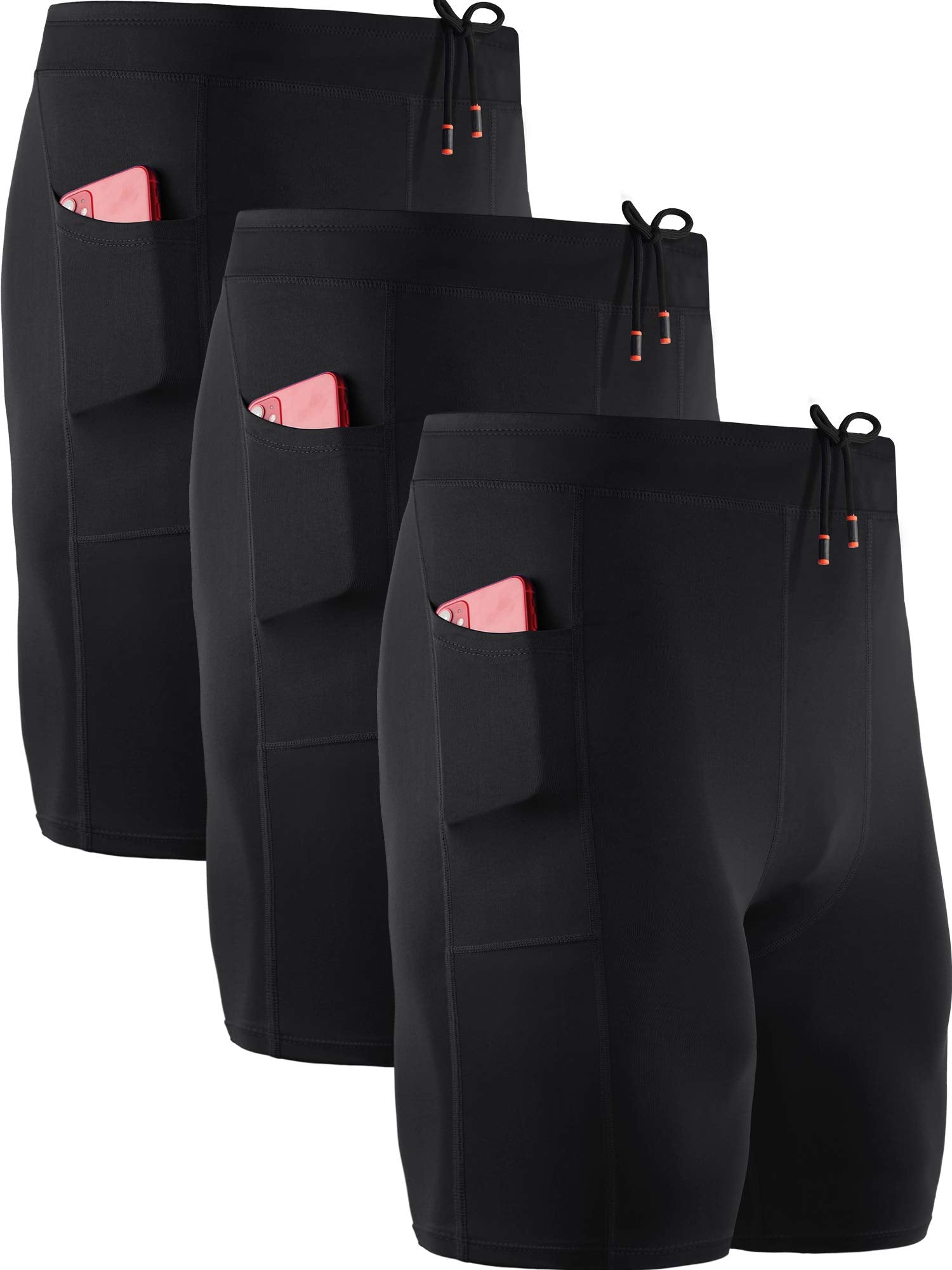 NELEUS Men's 3 Pack Running Compression Shorts with Pockets Dry Fit Professional Athletic Shorts,6072,Black,Black,Black,US XL,EU 2XL