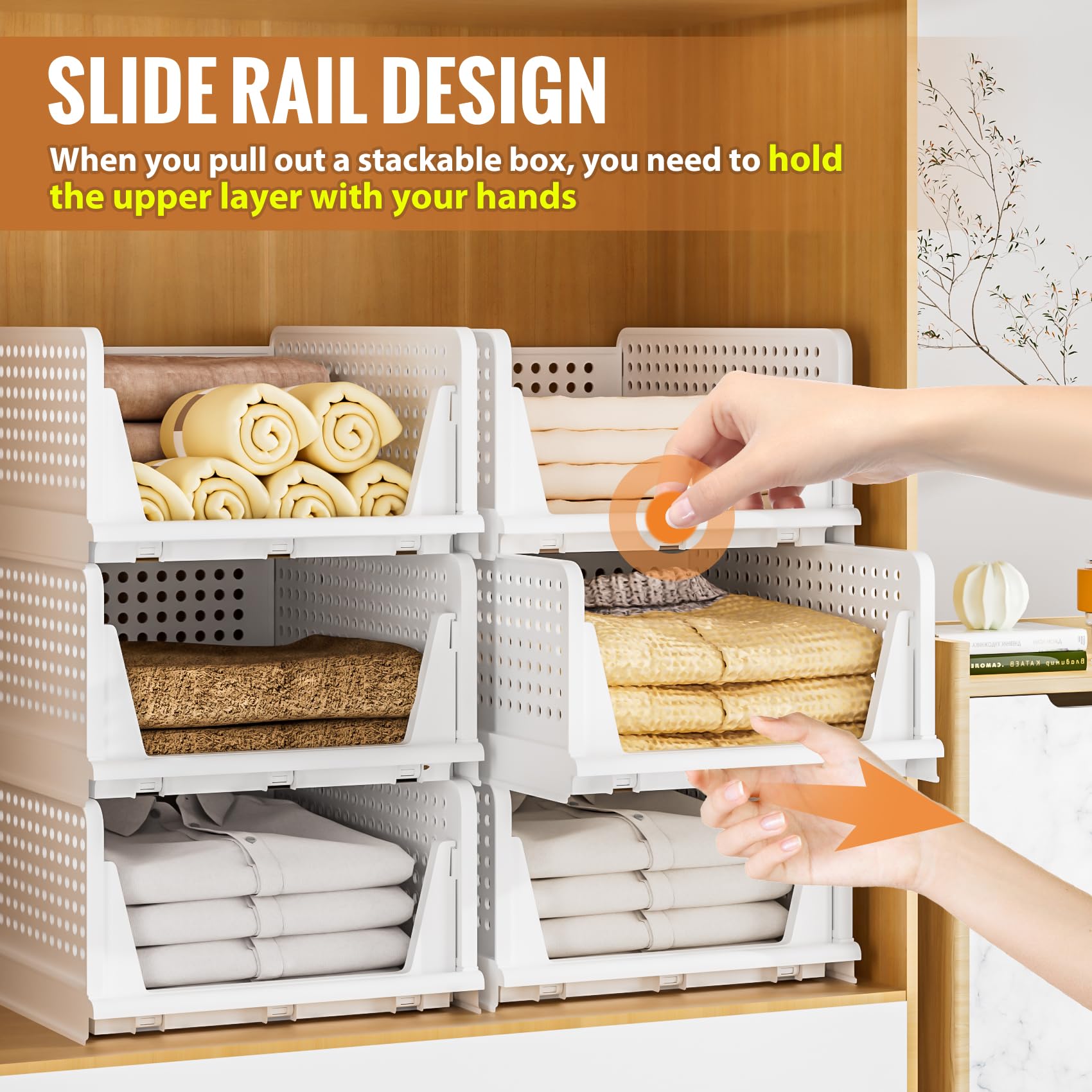 • 【Maximize Storage Space】The closet organizer is stackable which makes the home vertical space organized. Freely stack and adjust the quantities of closet drawers to best fit your closet or storage space. The closet shelf organizer's foldable design allows it not to take up space when not in use, and also helps save more space.