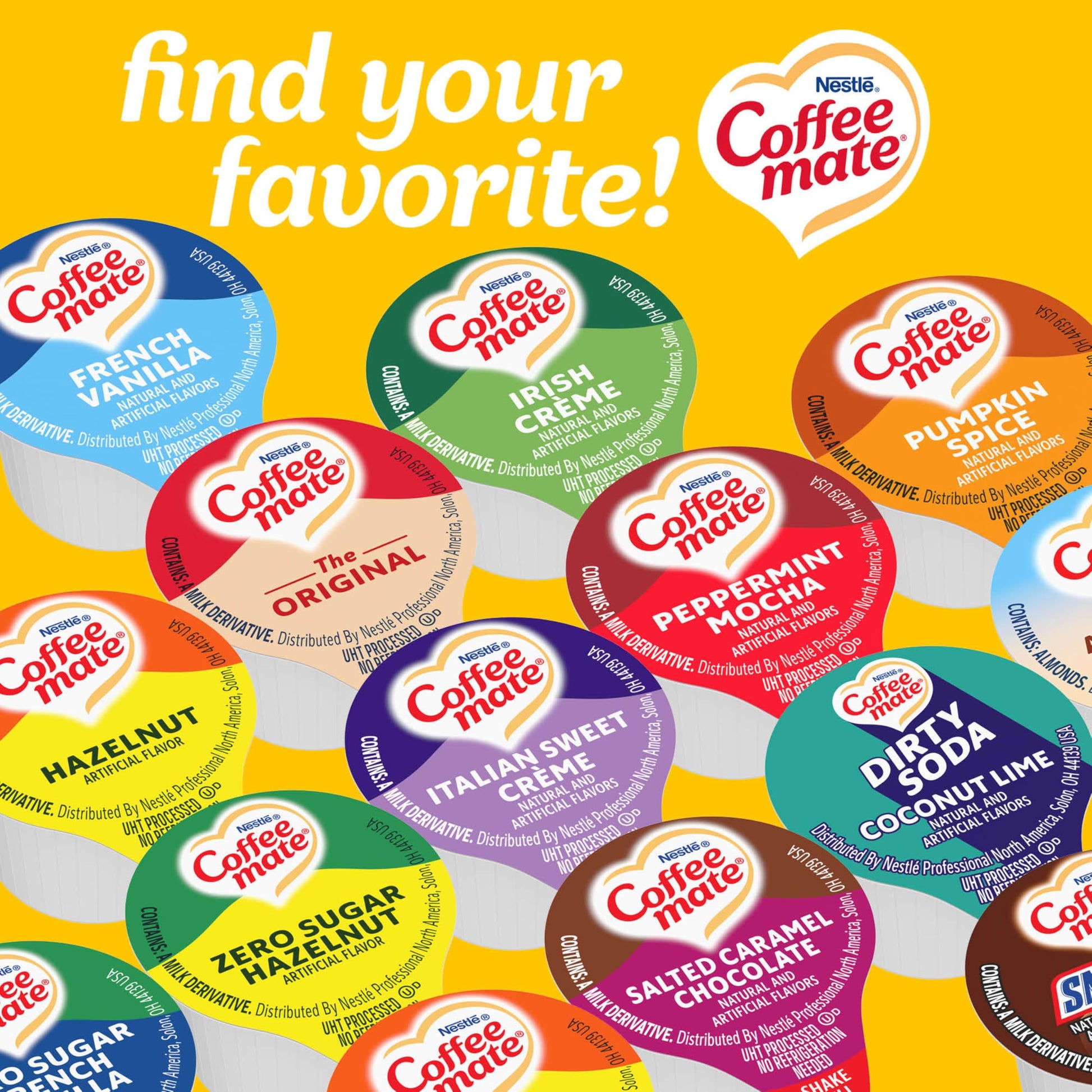 • Solutions for Every Need: Coffee mate offers liquid creamer singles, powdered creamers, liquid pump bottles, bulk creamers, and more to keep your office coffee bar and food stations stocked