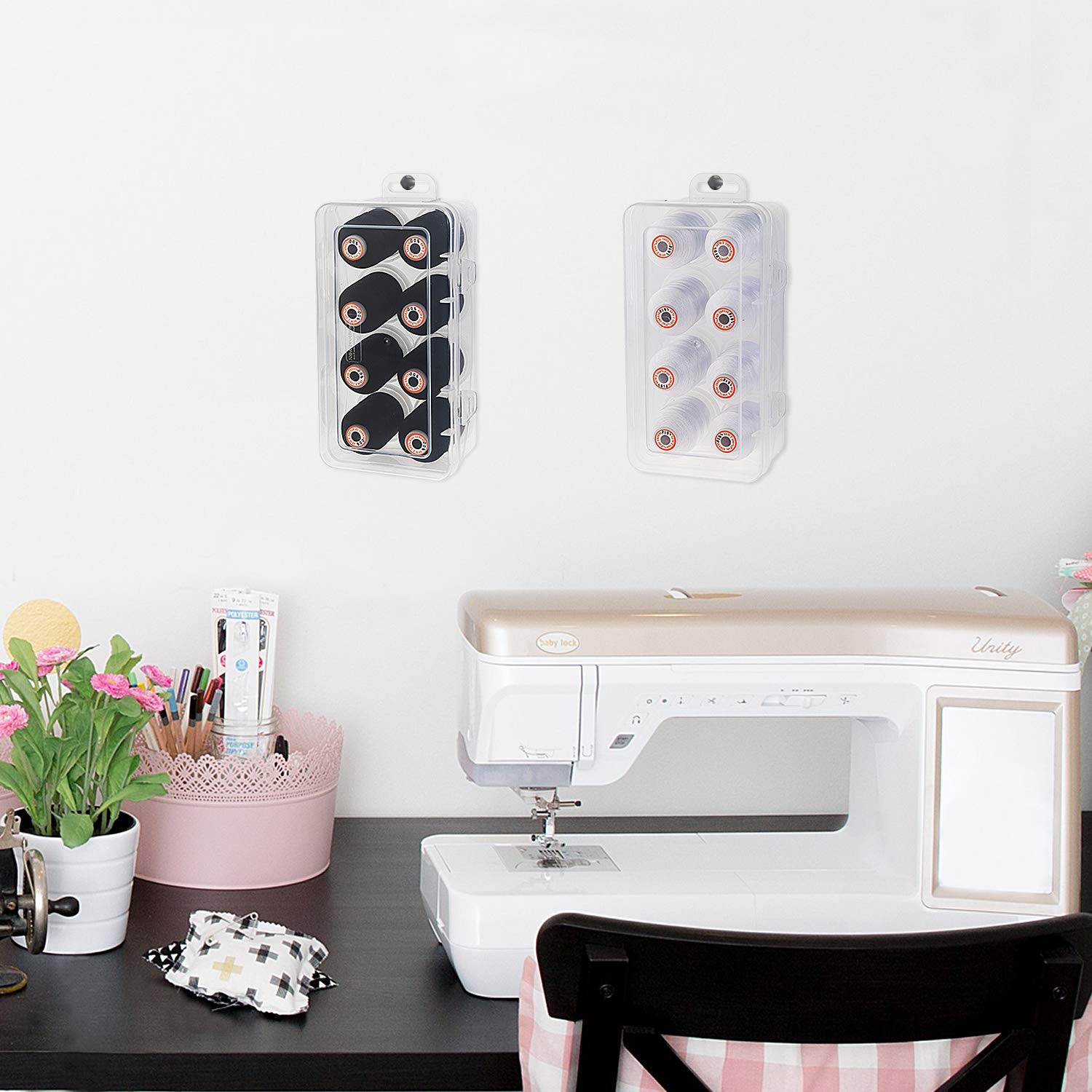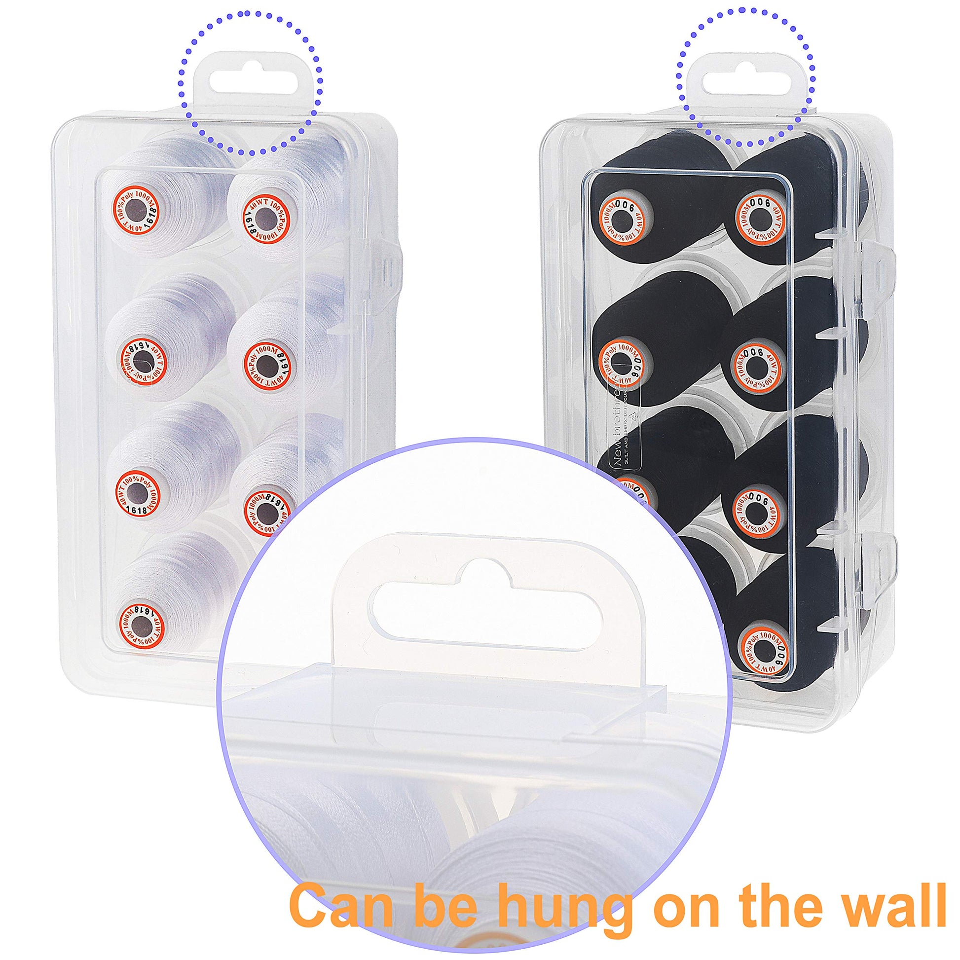 • ★ Stackable & Hangable Clear Plastic Storage Box: All the spools are orderly organized in the storage box. The box with High Quality clear plastic material allows you to identify thread colors & color numbers from outside easily. Except thread spools, you also can store other small embroidery & sewing accessories or other items. The boxes are stackable to organize the threads & accessories better and save space of your sewing room. Hanging the box on the wall with handy hook is also achievable.