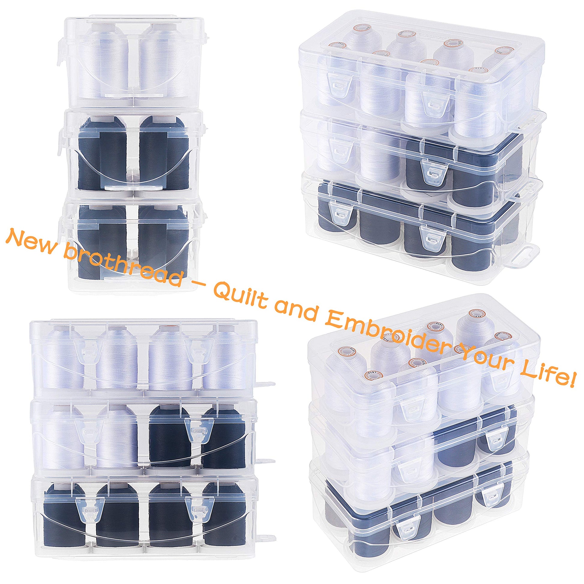 New brothread Polyester Embroidery Machine Thread 1000m Each with Clear Plastic Storage Box for Embroidery & Quilting - 4xSnow White+4xBlack