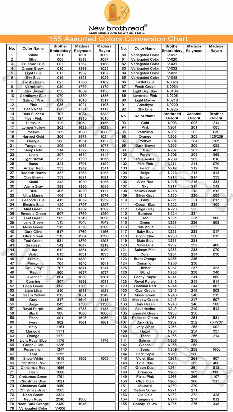 • ★★ Color Conversion is available. Most of these colors can be converted between Brother Colors and Madeira colors, you can get correct colors for your embroidery projects according to our New brothread color chart in pictures No. 3 and No. 4.
