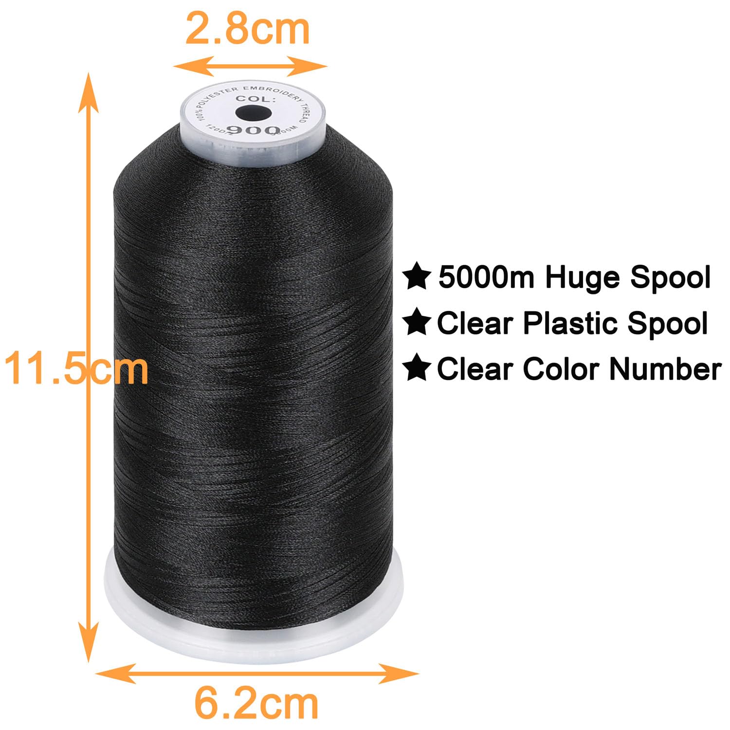 New brothread - Single Huge Spool 5000M Each Polyester Embroidery Machine Thread 40WT for Commercial and Domestic Machines - Black