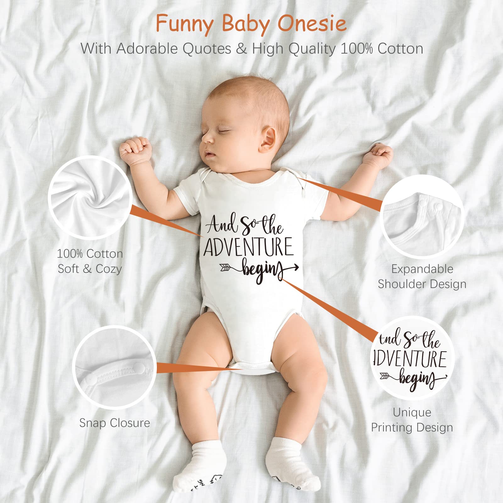 • 【Cotton Baby Essentials】Be prepared with the new baby announcement - onesies, socks, bibs with fun quotes are custom made for pregnancy announcements to announce that the adventure has begun! Baby mittens prevent baby from scratching himself; the beanie hat keeps the baby warm, and with a bear pattern, creating a cute atmosphere. The complete baby gift sets comes in a neutral white color for a baby boy or girl, it's even easier as a gender reveal gifts!