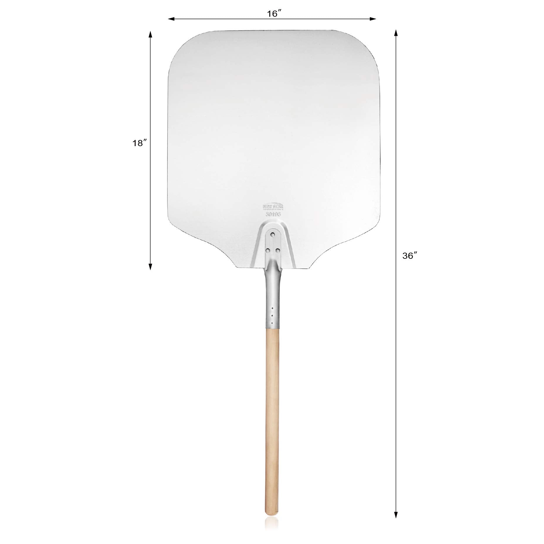 New Star Foodservice 50196 Aluminum Pizza Peel, Wooden Handle, 16 x 18 inch Blade, 36 inch overall