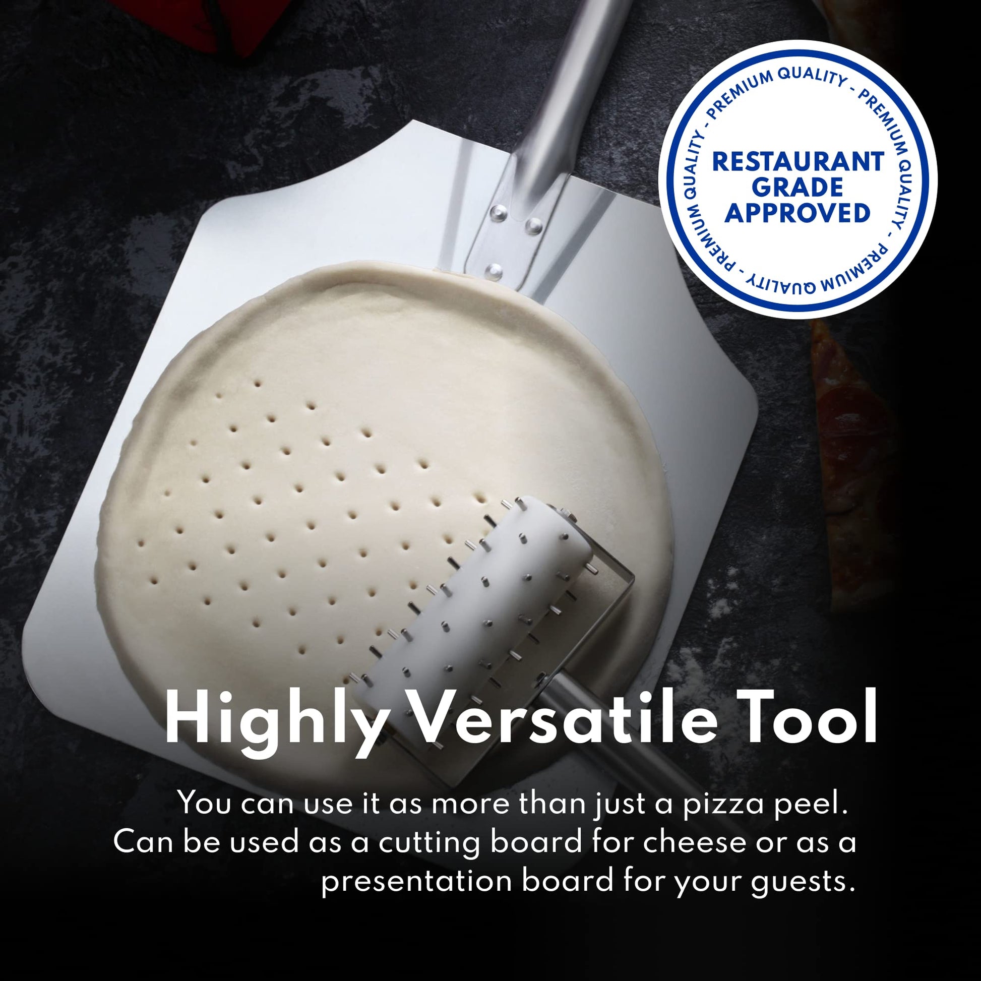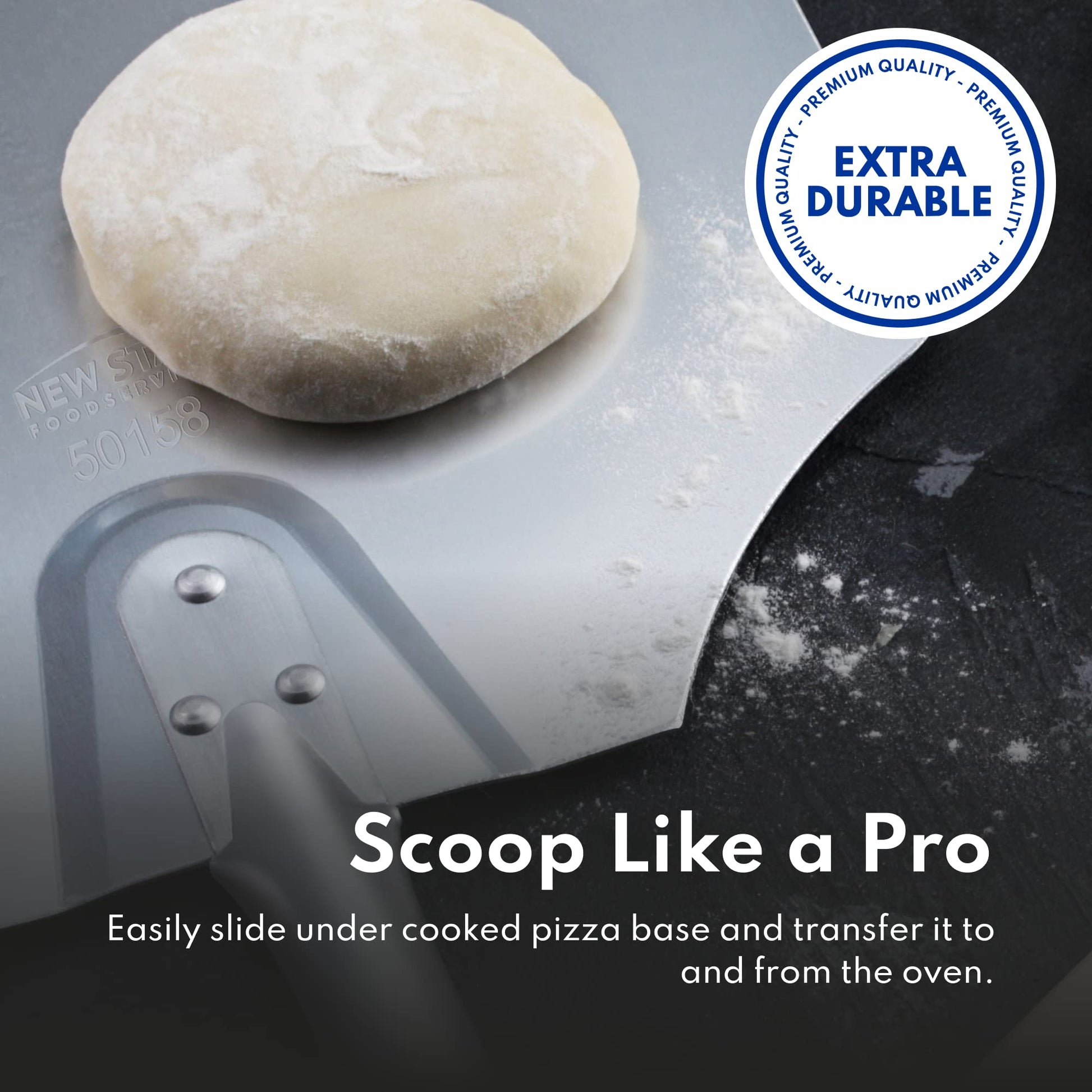 • Aluminum blade has a slimmer design than our wood peel options allowing it to more easily slide under, lift or flip whatever is in the oven