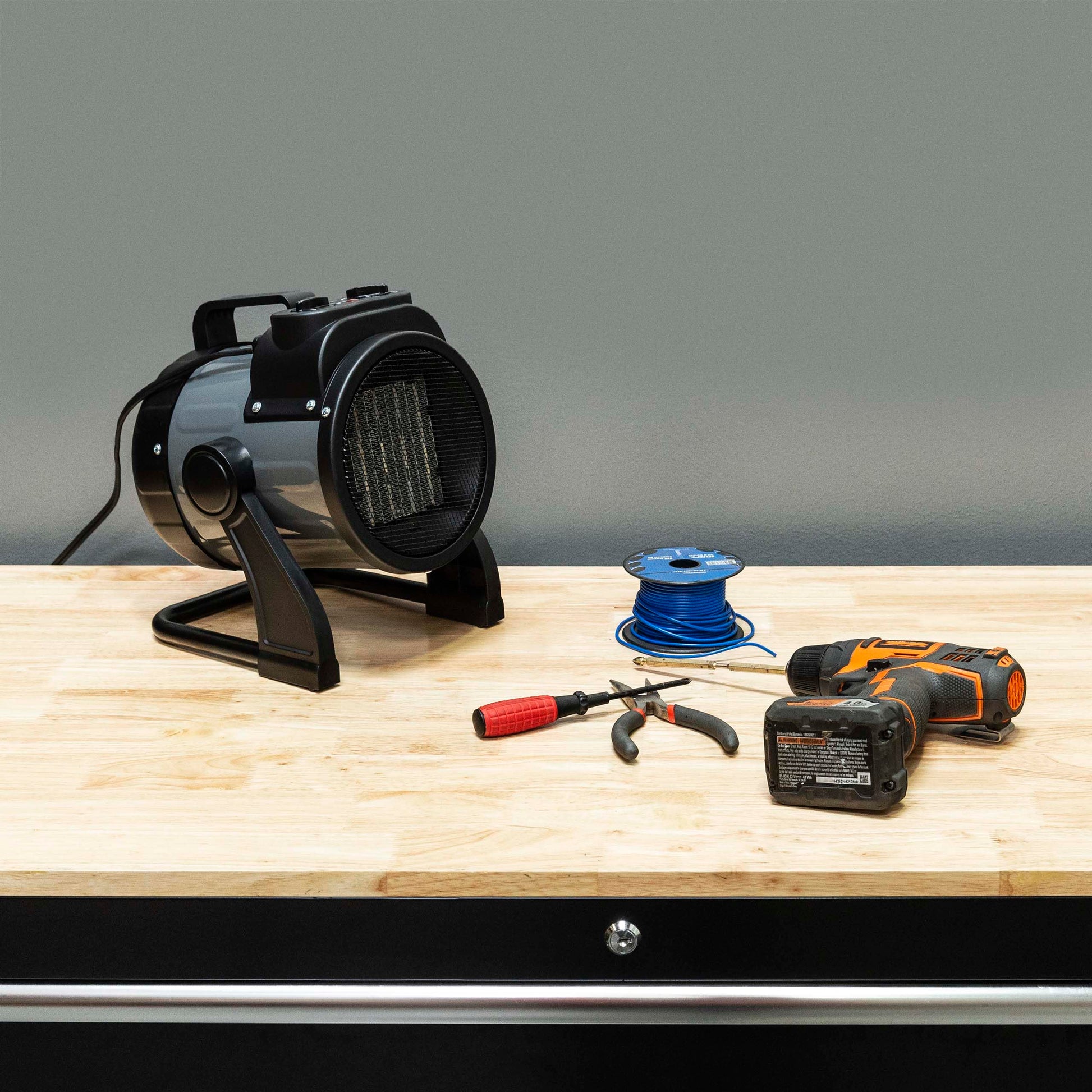 Thanks to its 120-volt plug, you can use this portable garage heater in any standard outlet so you can stay warm anywhere. The lightweight body has an integrated handle for travel, while the compact design makes it easy to pack away when winter ends.