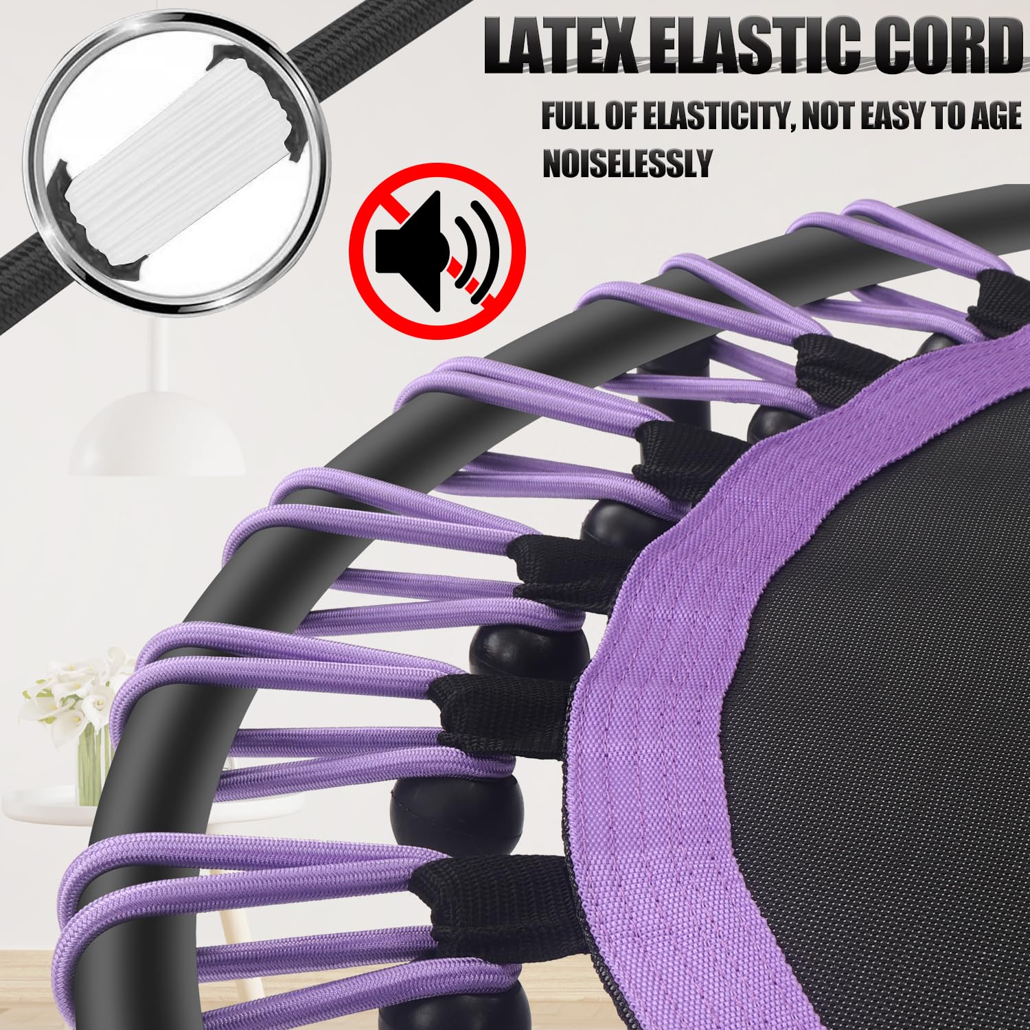 • ✅【Good Elasticity】:The bungee-rope design system with 30 thickened ropes which are 0.32'(8MM) of diameter provides joint-friendly suspension, reduces noise in maximum extent, affords more stability, and gives you a great jumping experience. Special tool is included for assembly.