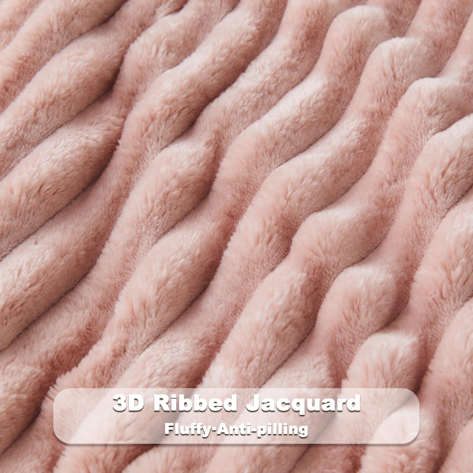 NEWCOSPLAY Super Soft Throw Blanket Pink Premium Silky Flannel Fleece 3D Ribbed Jacquard Lightweight Bed Blanket All Season Use (Pink Ribbed, Throw(50"x60"))