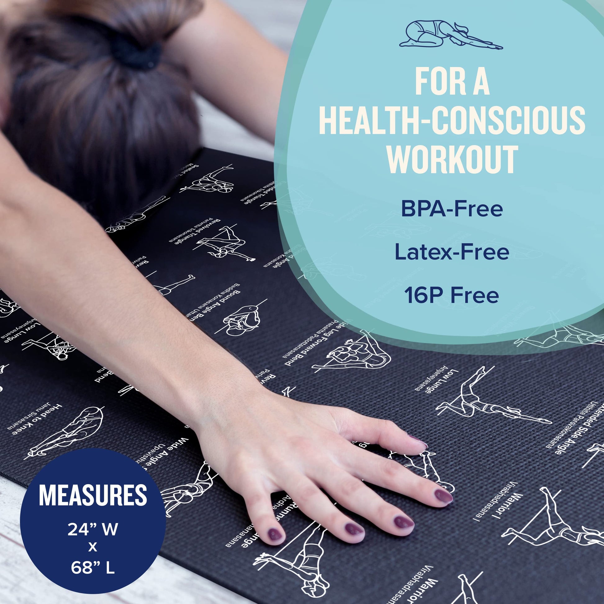 • ADDED POSE ILLUSTRATIONS - No need to keep looking at that video on your phone – our yoga mat for men and women comes printed with 70 different, easy-to-follow yoga poses to help you get started.