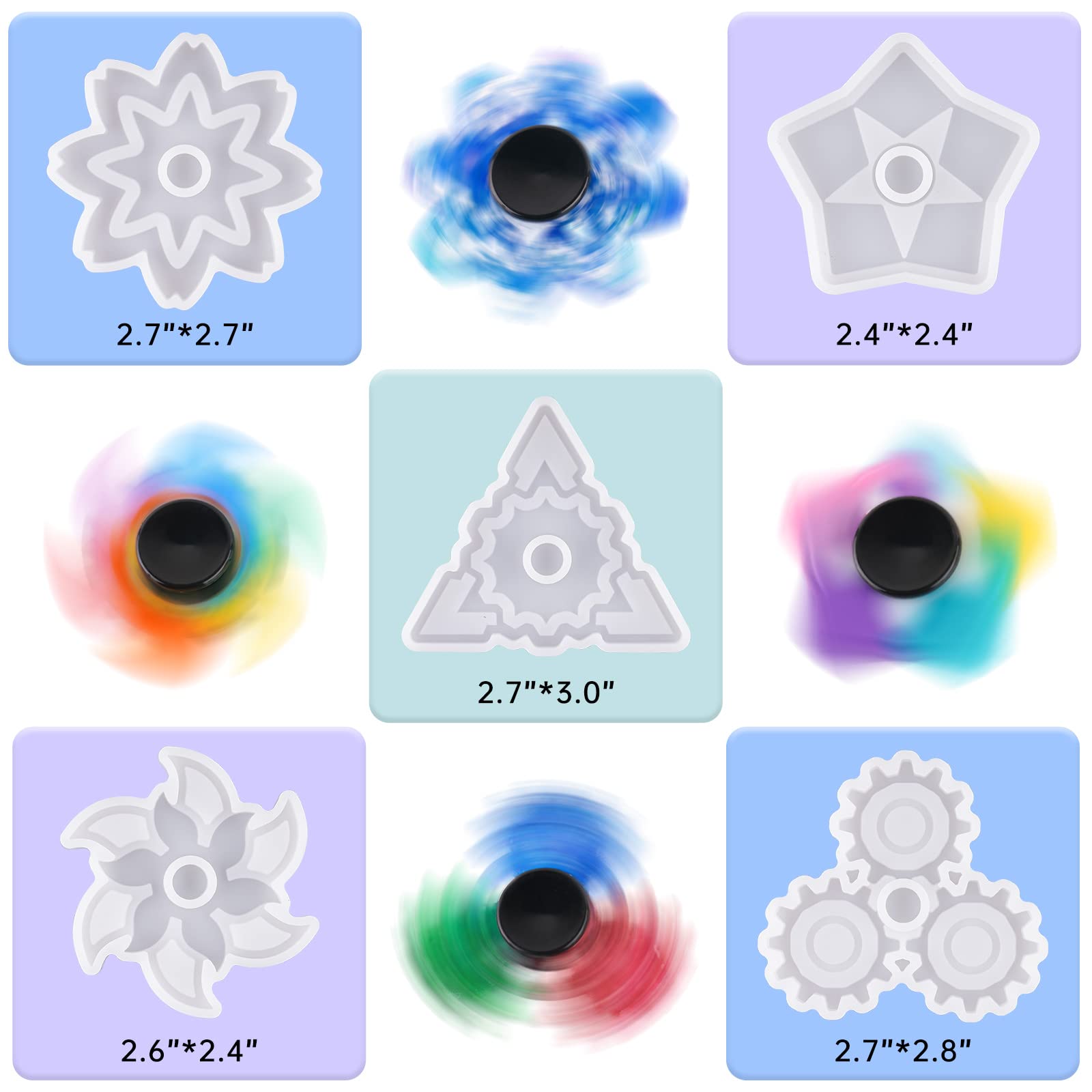 • 🎁【DIY Fidget Spinner Mold Kit】Includes 5x fidget spinner resin casting molds in assorted designs (Dia.: 2.6”, Height: 0.3”), 10x stainless steel bearings (Dia.: 0.5, H: 0.16”), and 10x black plastic bearing cap sets (Dia.: 0.9”). Explore your creativity with our DIY fidget spinner casting mold kit to create unique and cool fidget spinners that spin smoothly and bring you calmness. The molds can also be used for DIY projects such as coasters, candle holders, succulent planter bases and more.