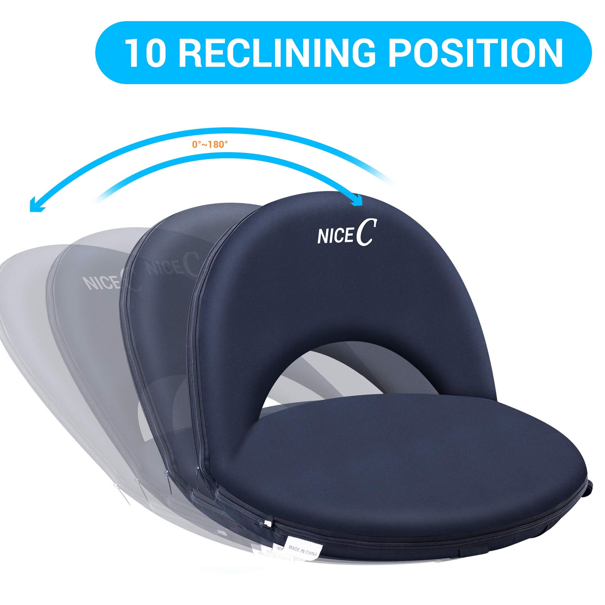 Nice C Stadium Seats, Floor Chairs, Bleacher Chairs, 10-Posisition Reclining Waterproof Cushion, Ultralight, Foldable, Extra Thick Padding, with Shoulder Strap & Net Pocket (Set of 1 Black)