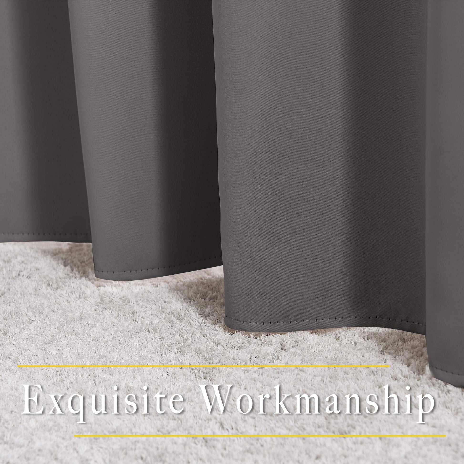 • Amazing Material: Super heavy and soft Blackout Curtain Panels are very upmarket. Besides, 85%-99% light blocking, thermal insulated, soundproof, and energy-efficient. Thread trimmed and wrinkle-free, both sides are the same color.