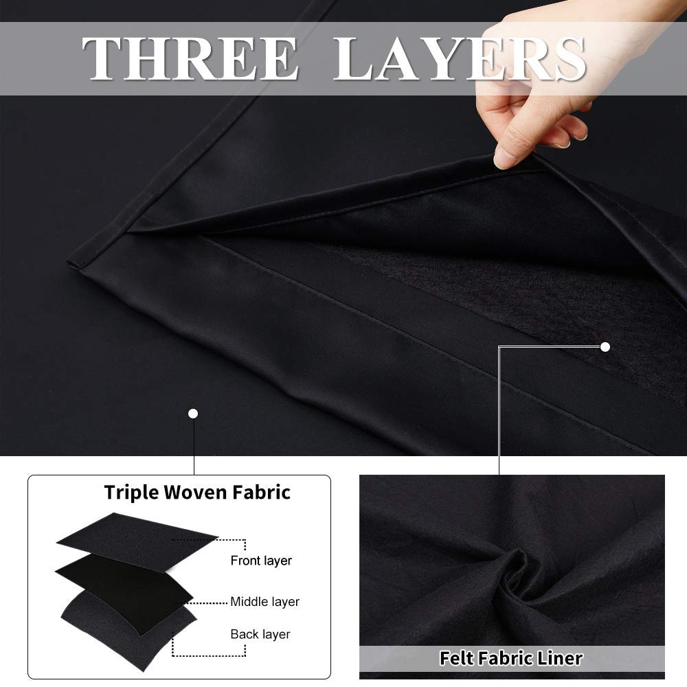 100% BLACKOUT: Curtains are made with 2 layers triple weave fabric and 1 layer detachable felt fabric liner. Thick enough to completely keep out the 100% SUNLIGHT and UV RAY. Offering you a real dark environment, a great choice for any room you would like to turn day into night.