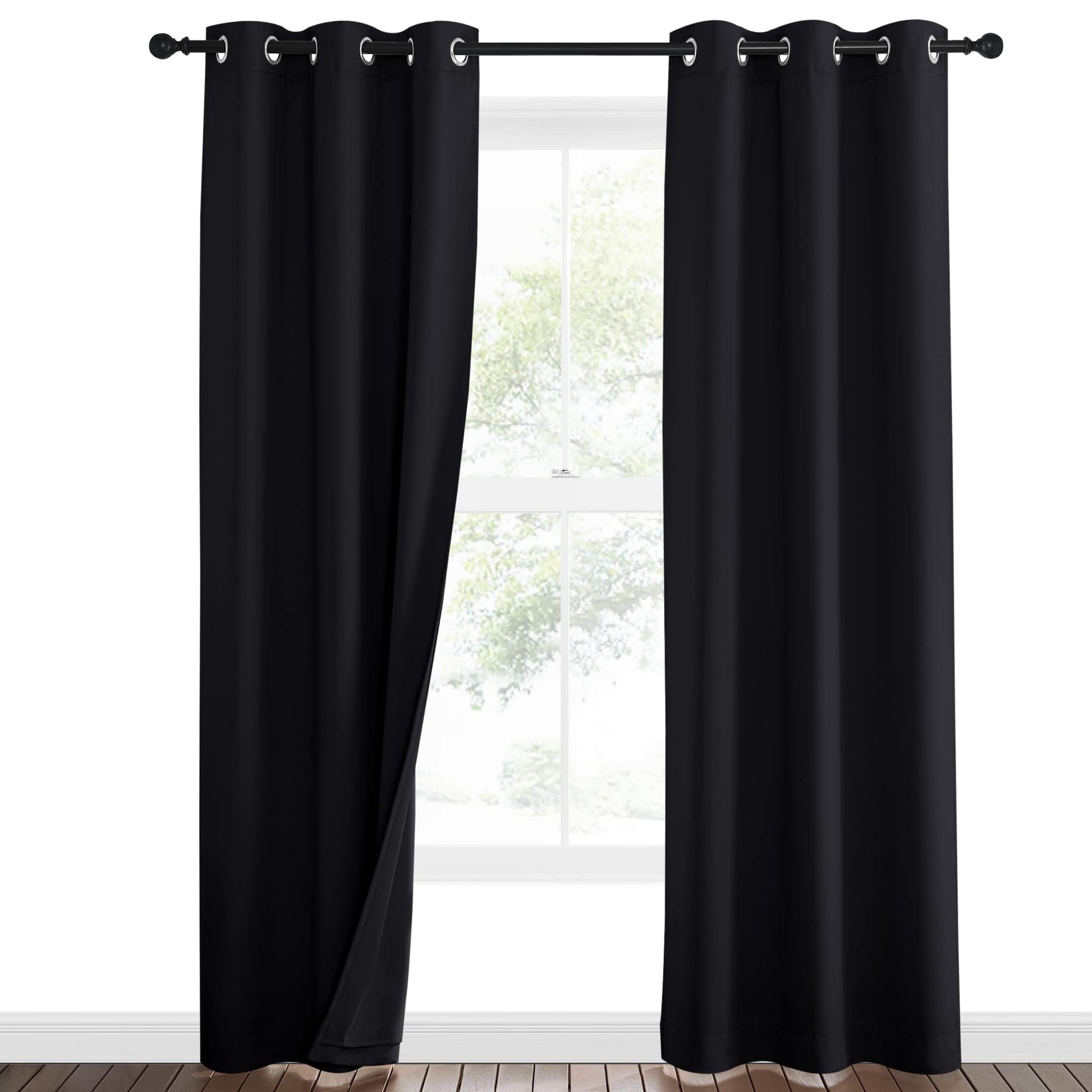 NICETOWN Sound Blocking and Heavy-Duty Space Divider Curtains for Living Room, Lined Insert Noise - Blackout - Thermal Insulation Curtains for Room Divider/Space Solutions (Black, 84 inches Long)