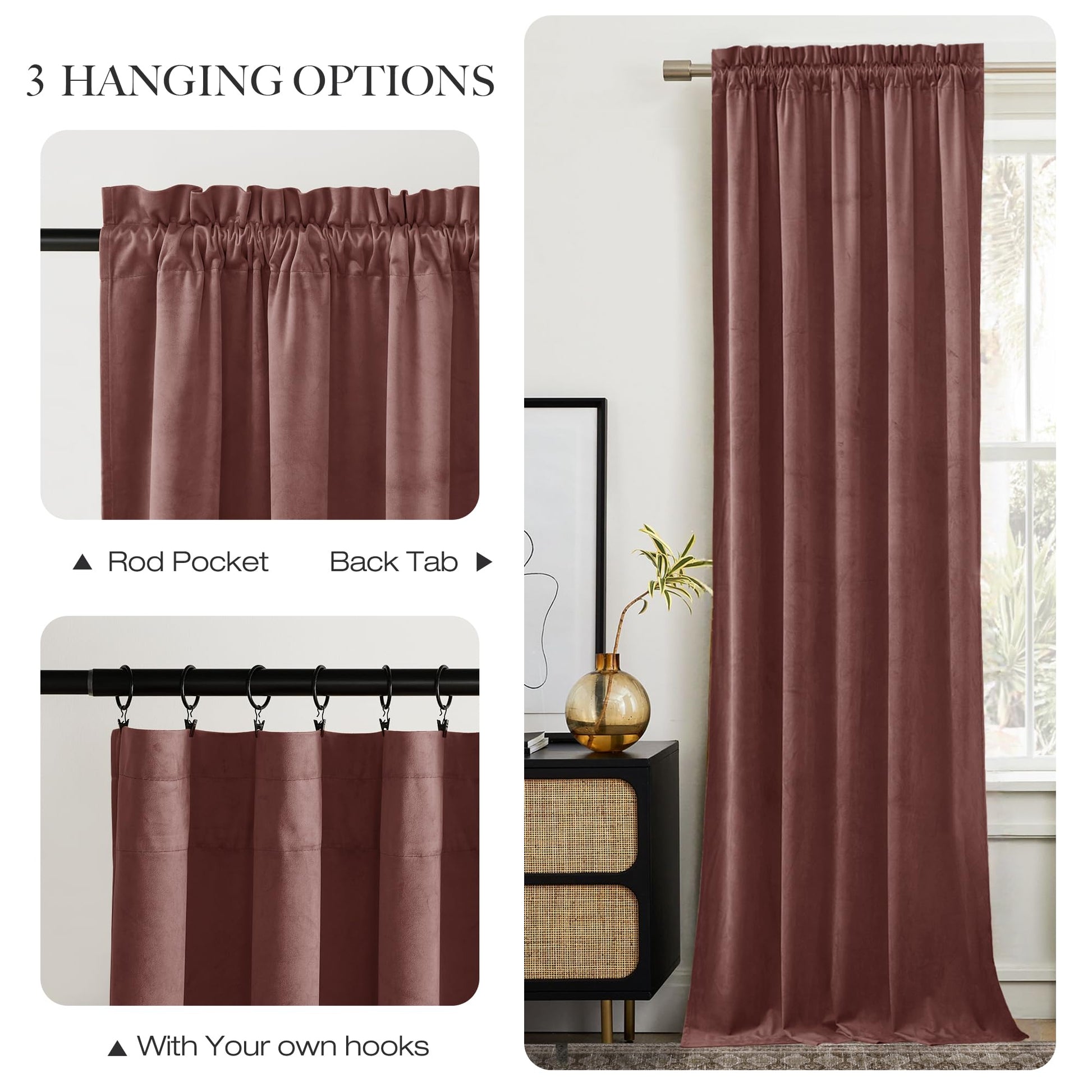 NICETOWN Wild Rose Velvet Curtains, Rod Pocket Velvet Drapes, Media Movie Theater Room Decor for Living Room, Super Soft Luxury Velvet Room Darkening Drapes for Home Decor (1 Pair, W52 x L96 inches)