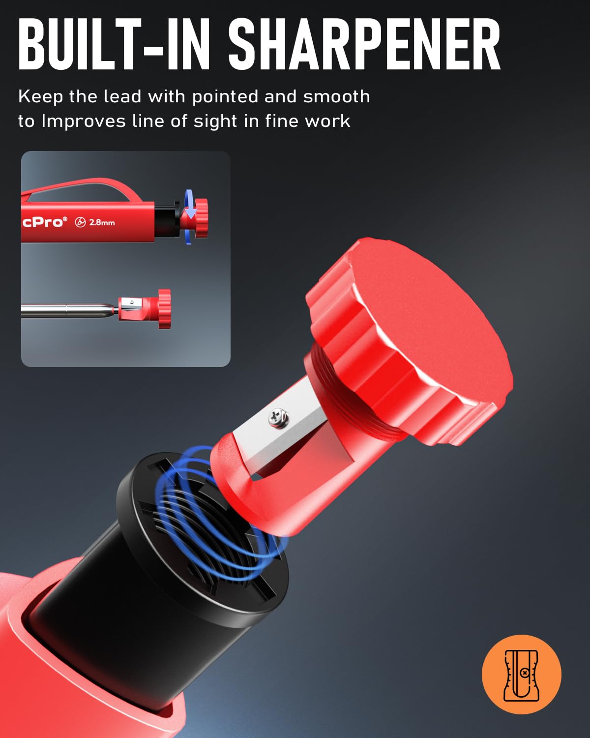 • Deep Hole Marker with Integrated Sharpener The 45mm elongated tip reaches into screw slots, drill holes, and tight gaps that ordinary pencils cannot. Each pencil includes a sharpener in the cap, so your leads stay precise and sharp for clear, accurate markings every time