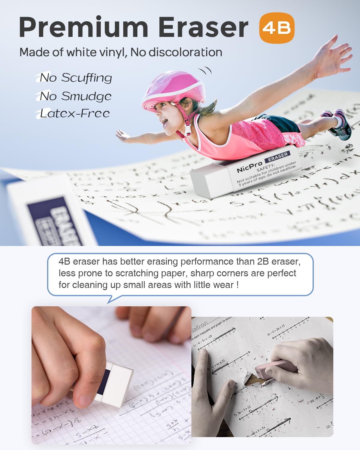 • 1.Valued Packaged:Come with 3pcs 0.5mm & 3 pcs 0.7mm mechanical pencils in 3 colors(blue pink white),12 tubes of HB lead refill (0.7 mm and 0.5 mm), 3pcs 4B soft erasers, 9 pcs cap eraser refills, 1 Cute storage case