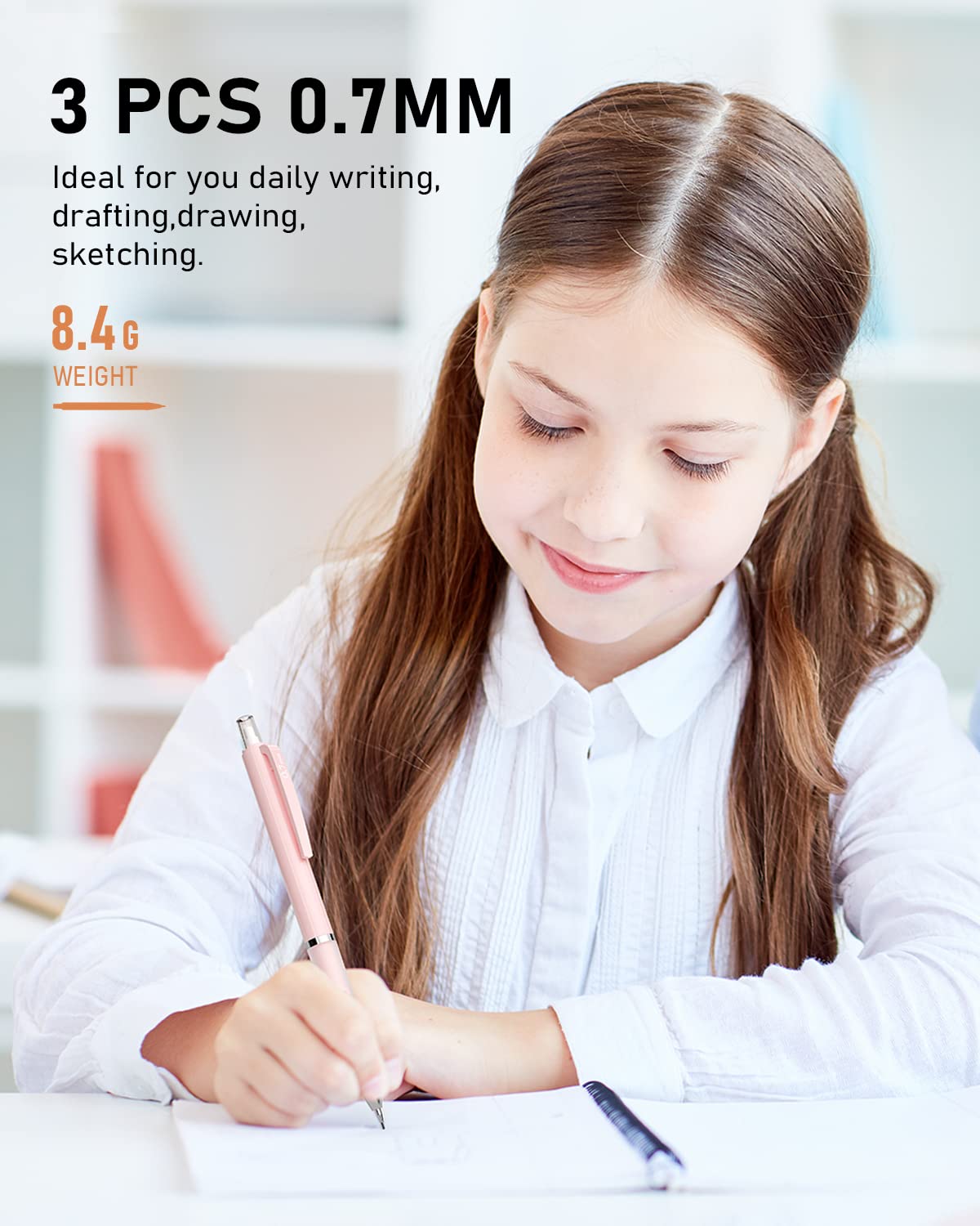 • Valued Packaged:You will get a cute mechanical pencil set, including 3pcs pastel mechanical pencils 0.7mm in 3 colors (blue pink violet), including 6 tubes of 0.7 mm lead refills (total 72pcs), 3pcs erasers, 9pcs cap eraser refills —all in a plastic pencil case