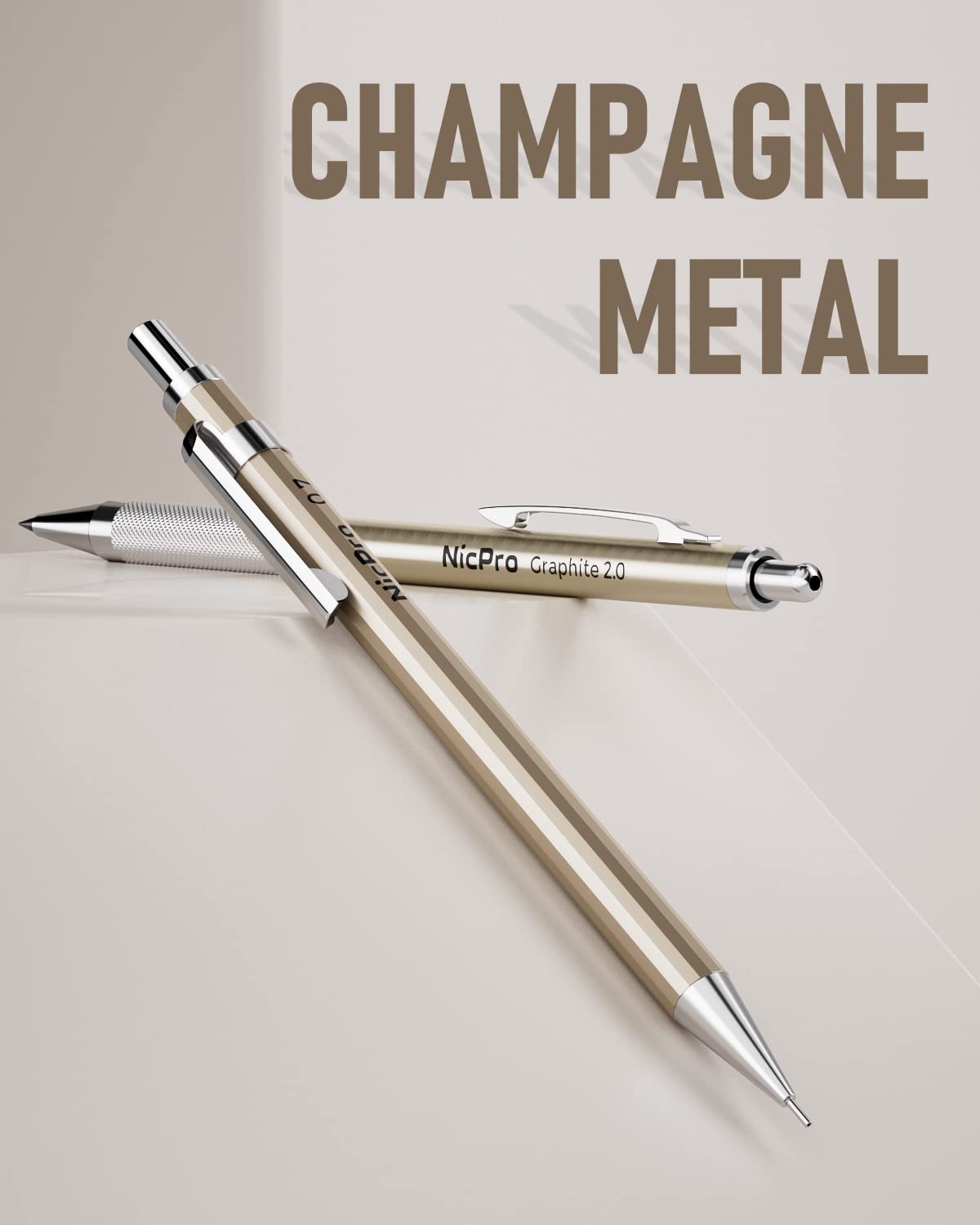 Nicpro 5 PCS Art Mechanical Pencils Set, Metal Drafting Pencil 0.3 & 0.5 & 0.7 & 0.9 & 2mm Graphite Lead Holder(4B 2B HB 2H Colored) for Sketching Drawing With Lead Refills Eraser Case