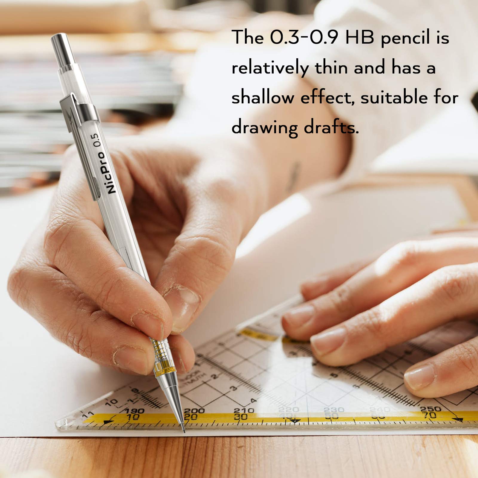 Nicpro 6PCS Art Mechanical Pencil Set, 4PCS Drafting Pencils 0.3 & 0.5 & 0.7 & 0.9 mm & 2PCS 2mm Lead Holder (4B 2B HB 2H) For Writing, Sketching Drawing With 12 Tube Lead Refills Erasers Case