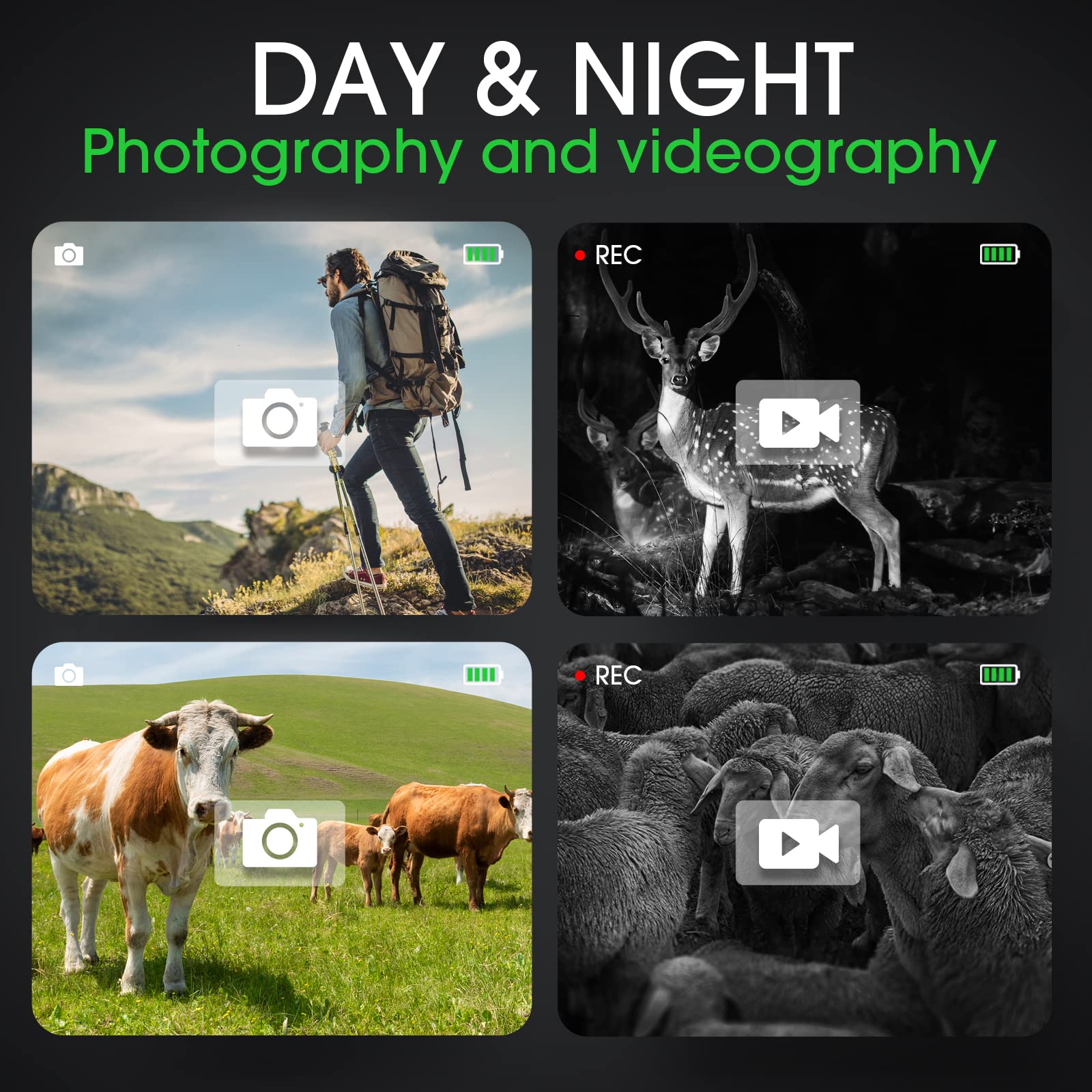 • LIGHTWEIGHT & PORTABLE: The night vision monocular can be used for hunting, observation, bird watching, security surveillance, camping, indoor and outdoor. The monocular night vision comes with 1 stable tripod, 1x 32GB memory card, 1x USB data transfer charging cable(type-C), 1x neck strap, 1x hand strap, 1x storage bag, 1x cleaning cloth, 1x manual