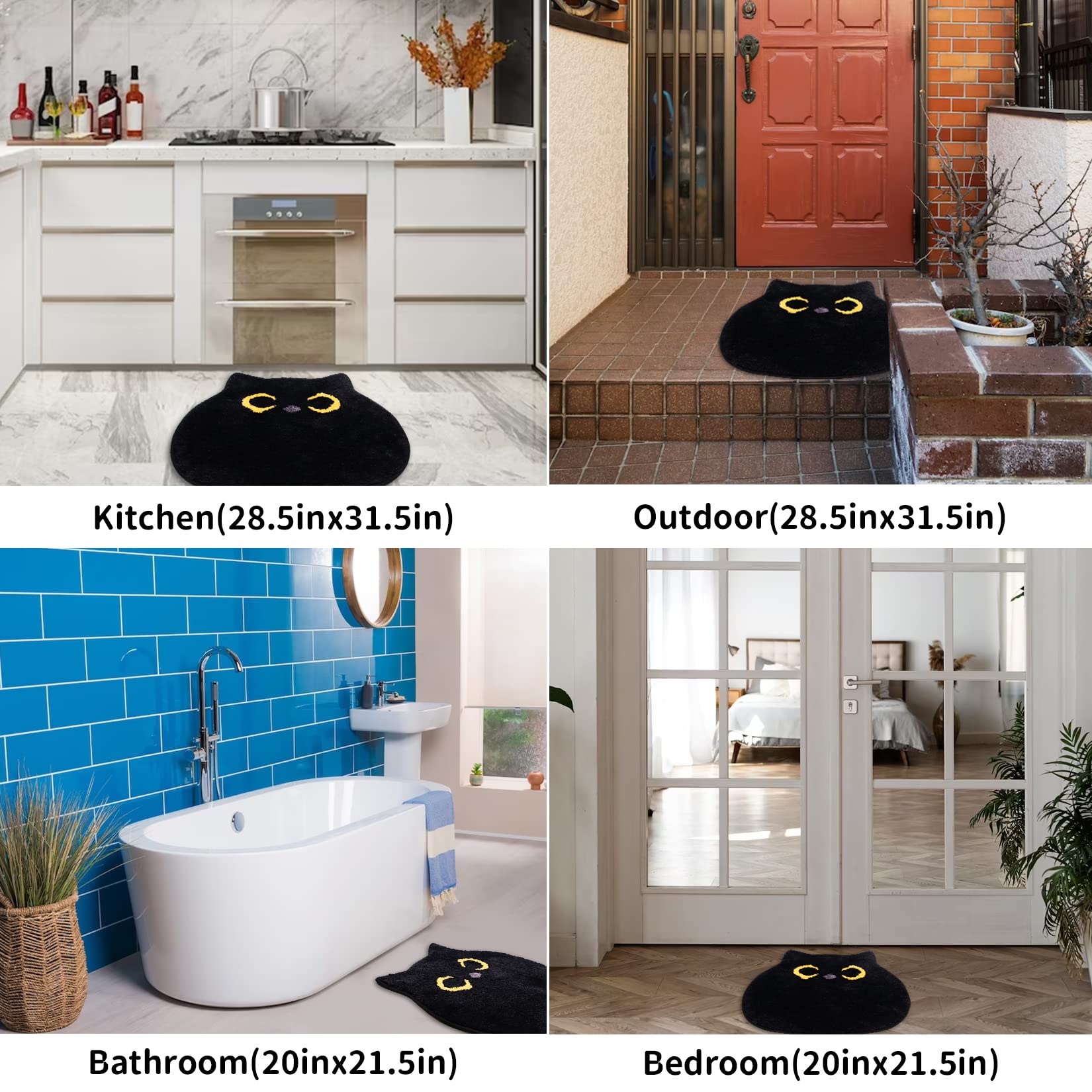 NIGOWAYS Bathroom Rug - Bathroom Mat,Black Cat Rug,Soft Cat Bath Mat,Non Slip Bath Mats for Bathroom Kitchen Bedroom,Home Decorations Gifts(20 * 22inch)
