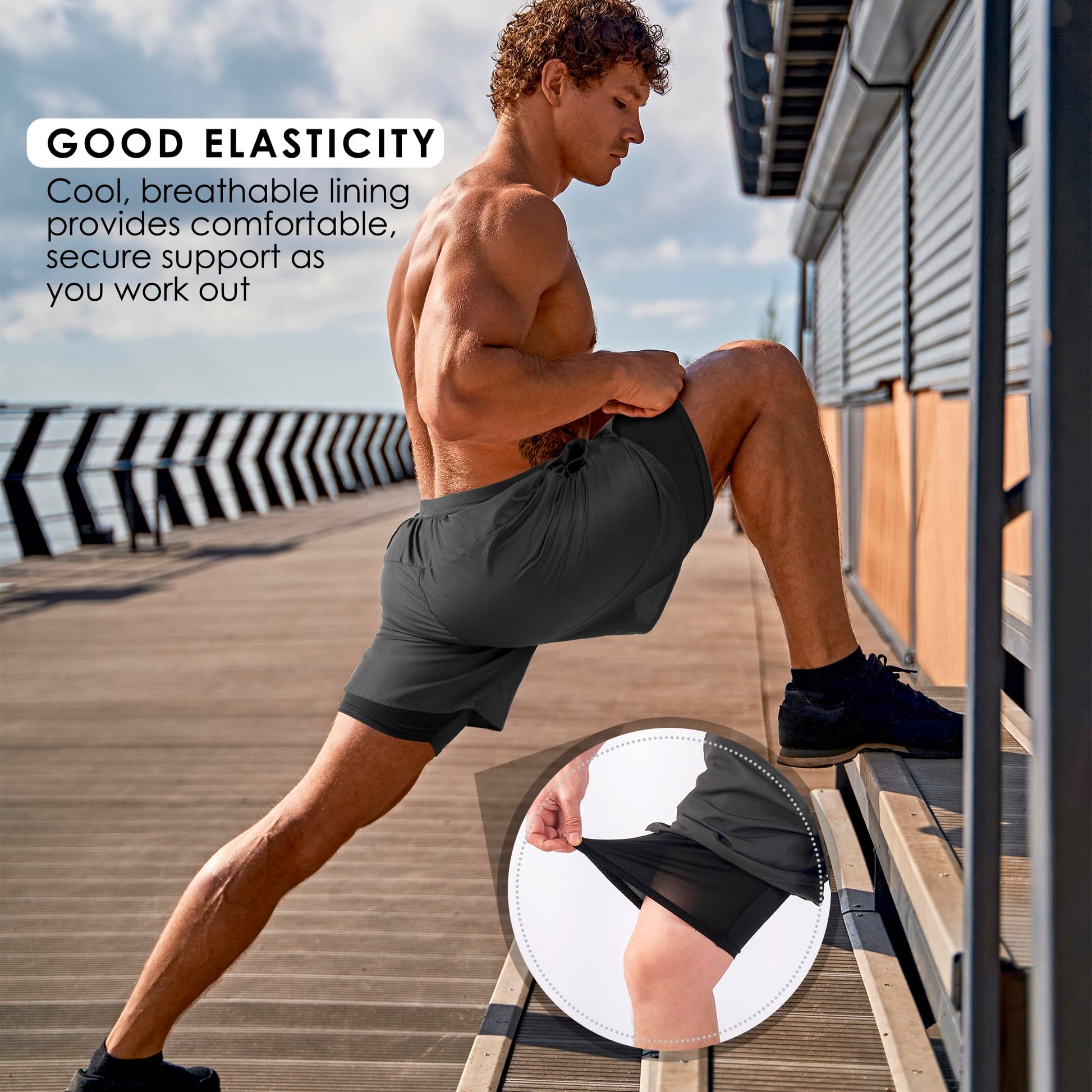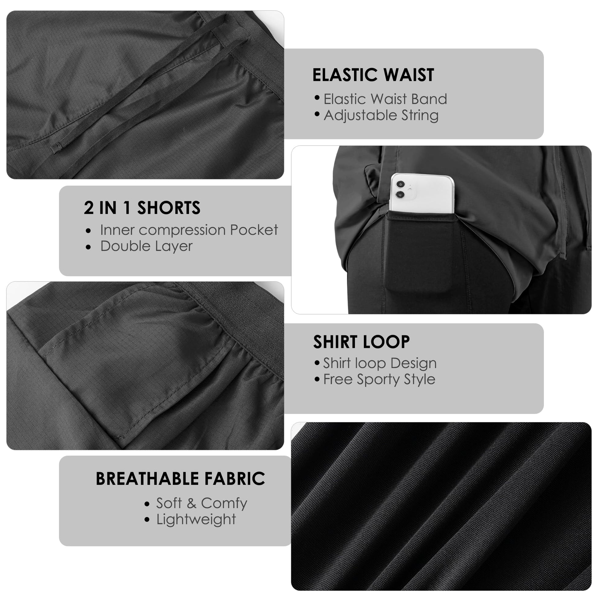 NIMOJIRO Men's 2 in 1 Running Shorts Workout Athletic Shorts Outdoor Sports with Liner Lightweight Training Yoga Gym Shorts with Phone Pockets