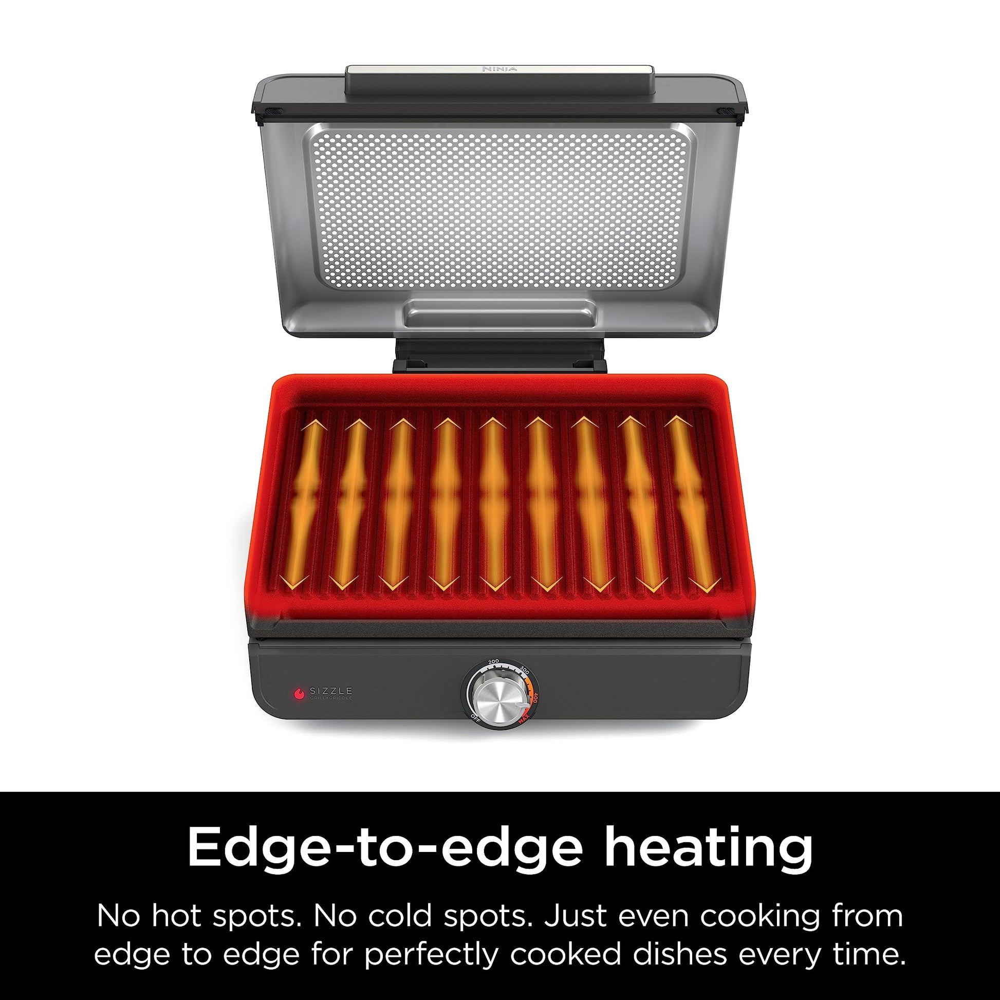 Details: Meet the Ninja Sizzle, the compact cooking system that high-heat grills and griddles your favorite meals right from your countertop. Reaching temps up to 500°F, achieve the perfect char-grilled marks with direct, edge-to-edge even heat. Satisfy any meal craving using the interchangeable grill and griddle plates, from fluffy pancakes to tender chicken breasts that the whole family will enjoy.