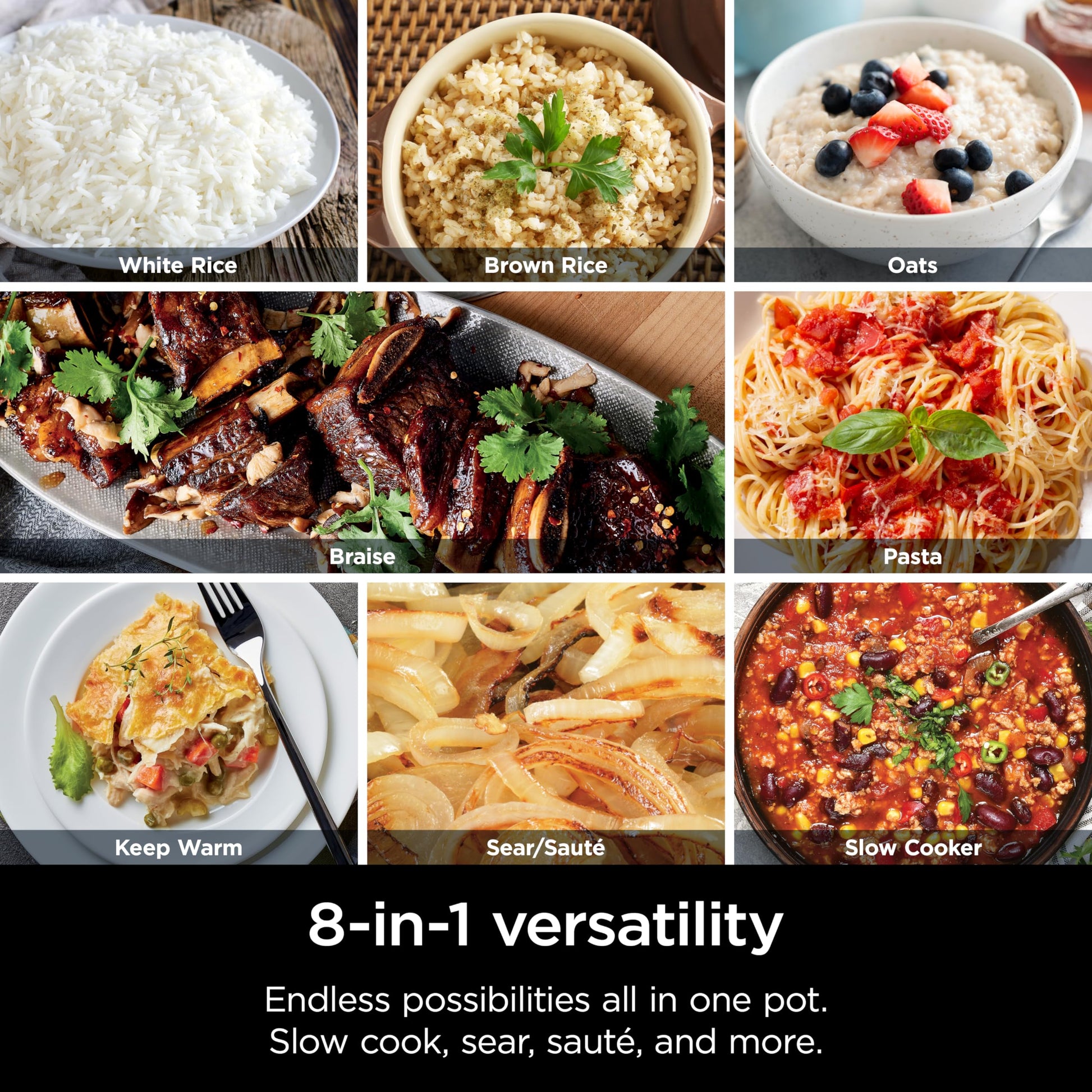 8-in-1 VERSATILITY: Slow cook, Sear/Sauté, Braise, Keep Warm, White Rice, Brown Rice, Oats and Pasta.
