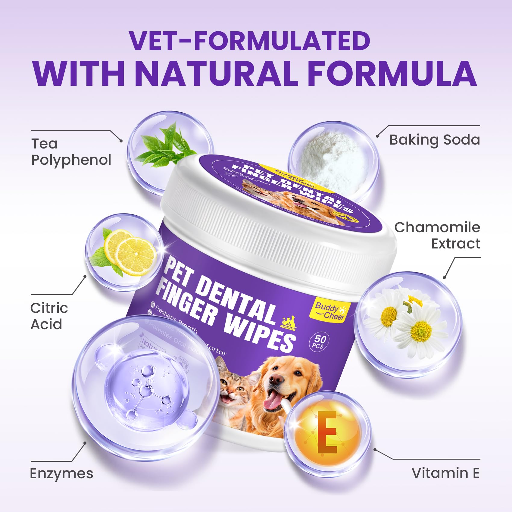 • 【Safe Formula for Pets】Alcohol-free, free from parabens and fragrances, making it safe even if licked or ingested. These dog and cat dental wipes are made with natural ingredients, perfect for pets with sensitive teeth, gums, and enamel.