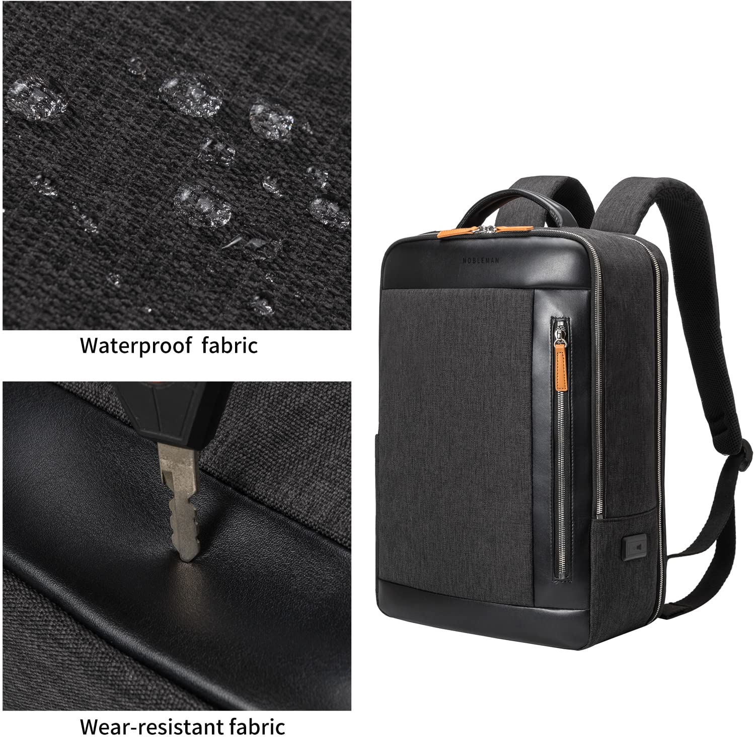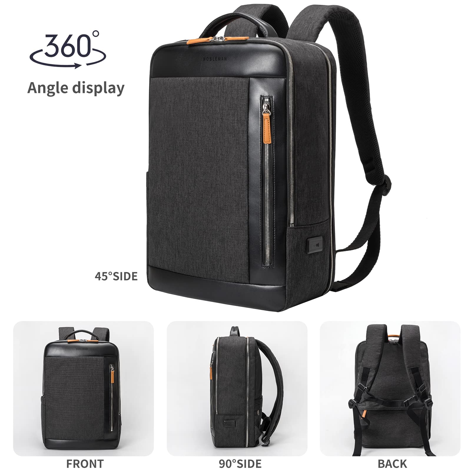 NOBLEMAN Professional Laptop Computer Backpack Men, Luxury Expandable Travel Business Office Backpacks for Executive Men, Nice Leather Waterproof College Bookbag Bag Fits 17 Inch Tech Laptop (Black)