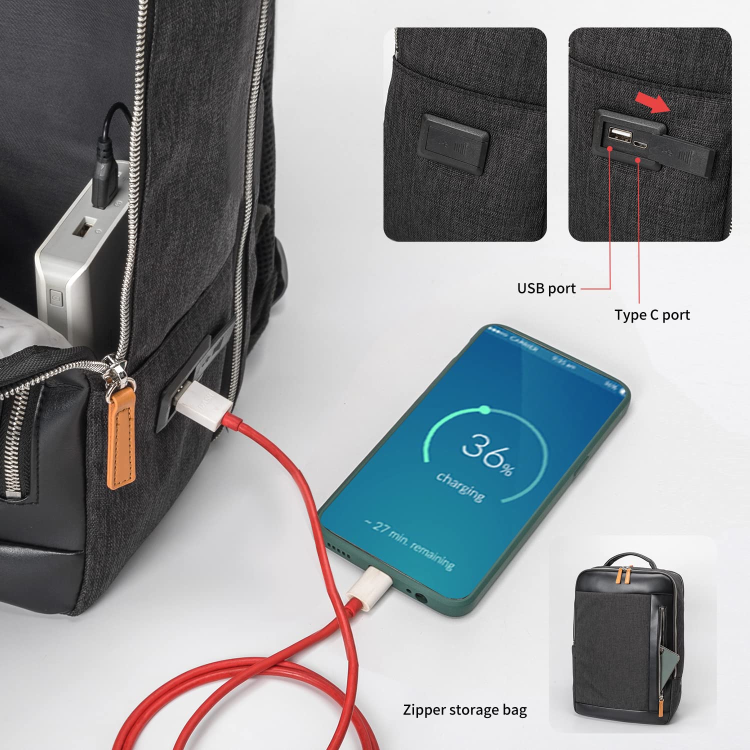 • USB fast charging:External USB Charging port can support fast charge your phone while walking. A very practical slim backpack can be used as a gift for office workers. Perfects for weekend getaways, shopping, office, business traveling and other activities.