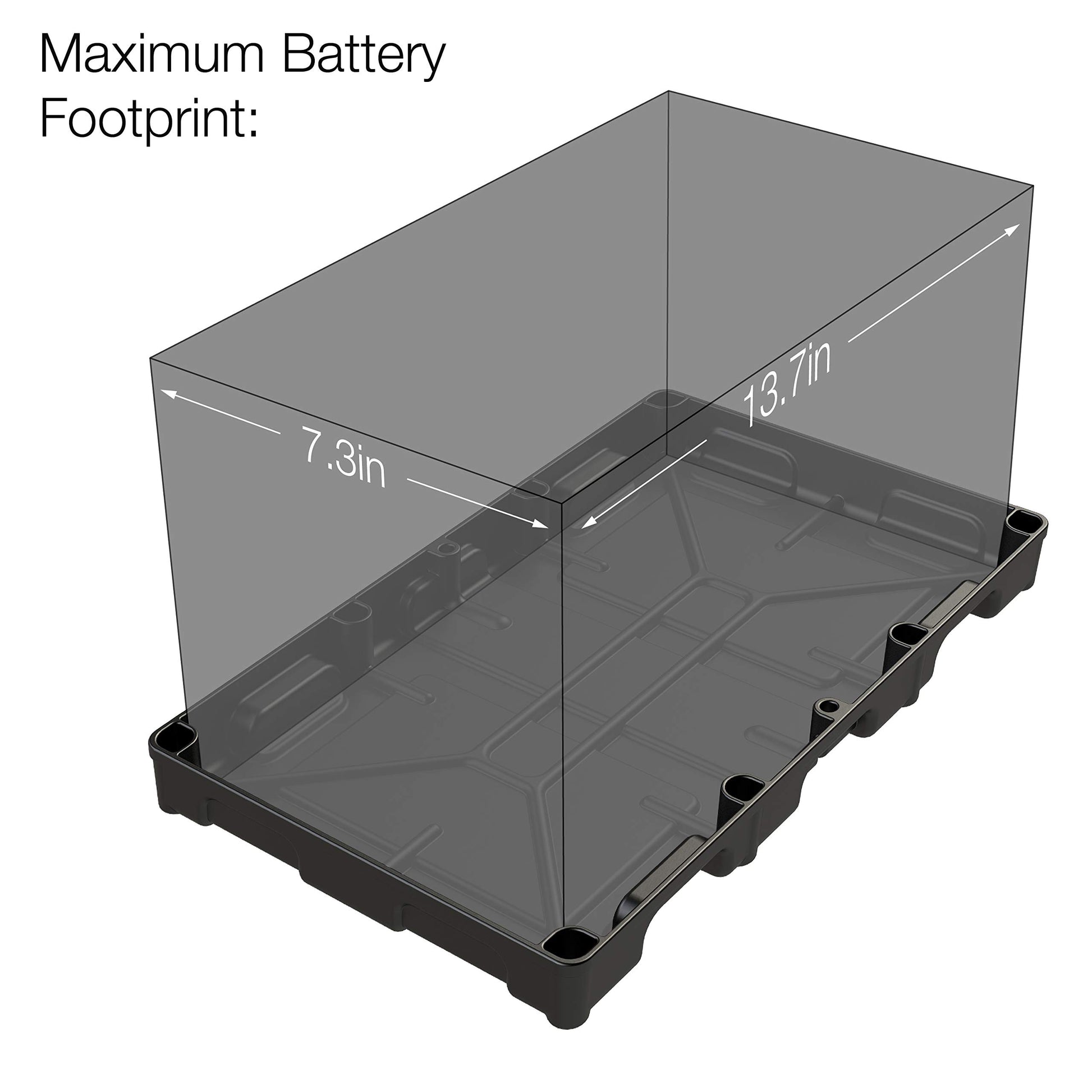 - Keeps your battery securely mounted and limits battery movement during transportation and operation.