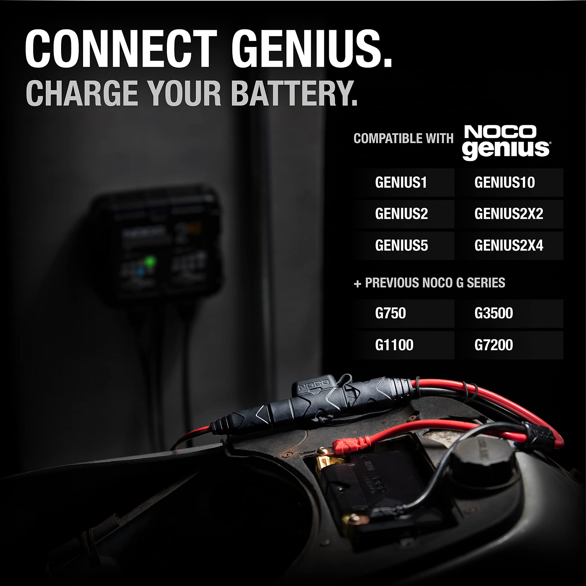 Details: The GBC007 Boost X-Connect Adapter allows you to easily swap between NOCO Boost and Boost X UltraSafe Lithium Jump Starters and NOCO Genius Smart Battery Chargers. It features an 18.5-inch eyelet terminal accessory with M6 hole size, and 8AWG silicone wire maintains flexibility in cold environments. Jump start with GB20, GB40, GB50, or GBX45 Boost and Boost X UltraSafe Lithium Jump Starters or charge NOCO Genius Smart Battery Chargers using the included adapter. Compatible chargers include G750, G1100, G3500, and G7200, as well as GENIUS1, GENIUS2, GENIUS2X2, GENIUS2X4, GENIUS5, and GENIUS10.