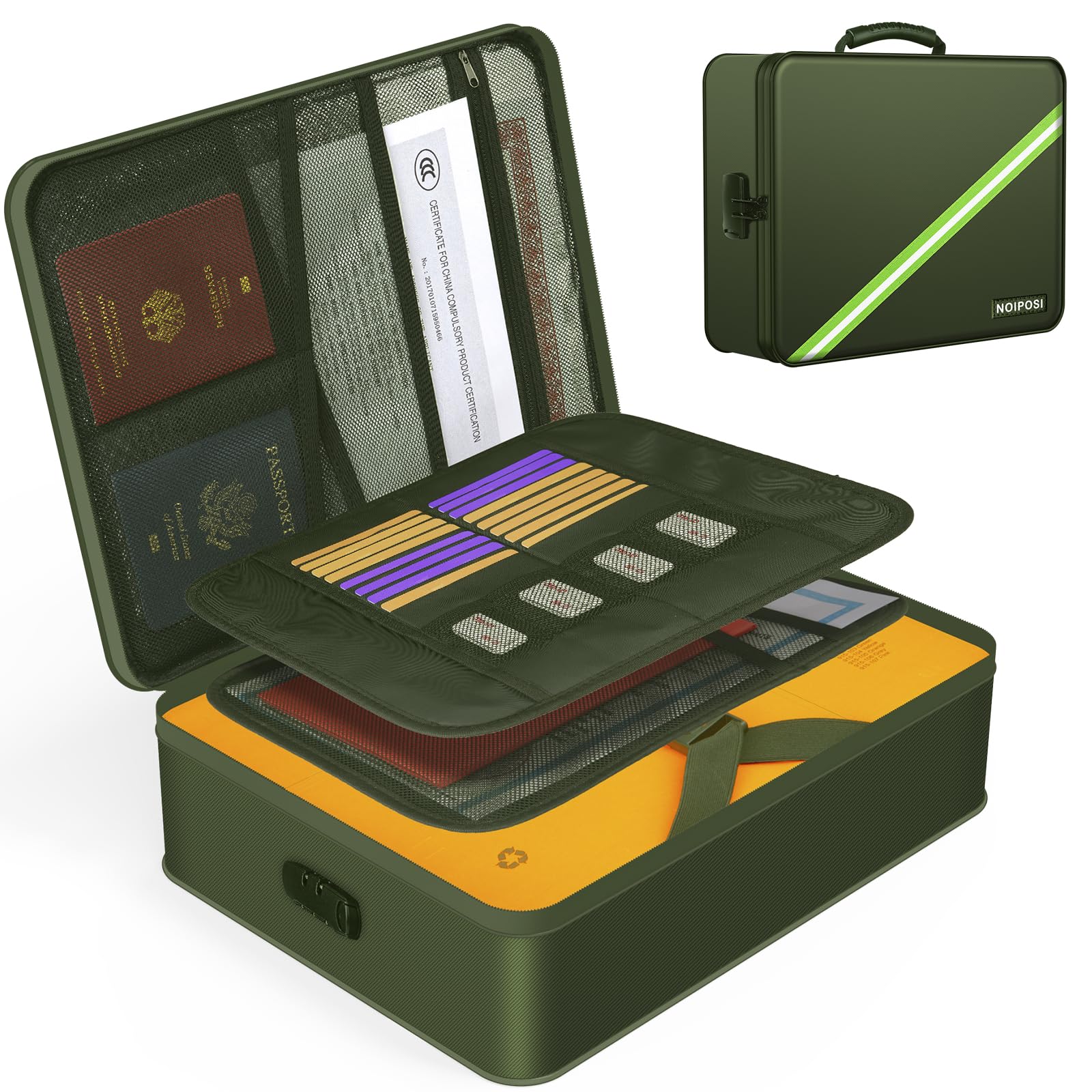 Noiposi Document Organizer with 5200℉ Heat Insulated,Waterproof and Fireproof Document Box,Portable Home Travel Safe Storage Box for Important Documents,File and Birth Certificate,Green