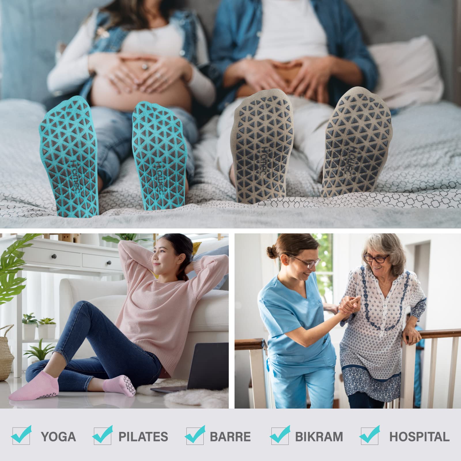 • SIZE: Fits Women’s shoe size 7.5-10 / Men’s shoe size 6-8.5. These adult grippy socks for men and women are perfect for yoga, pilates, barre,bikram, ballet, studio, gym or dance. Also Ideal for hospital socks, floor socks, physiotherapy, elderly care, pregnancy and more to prevent falls from stairs , or the floor.