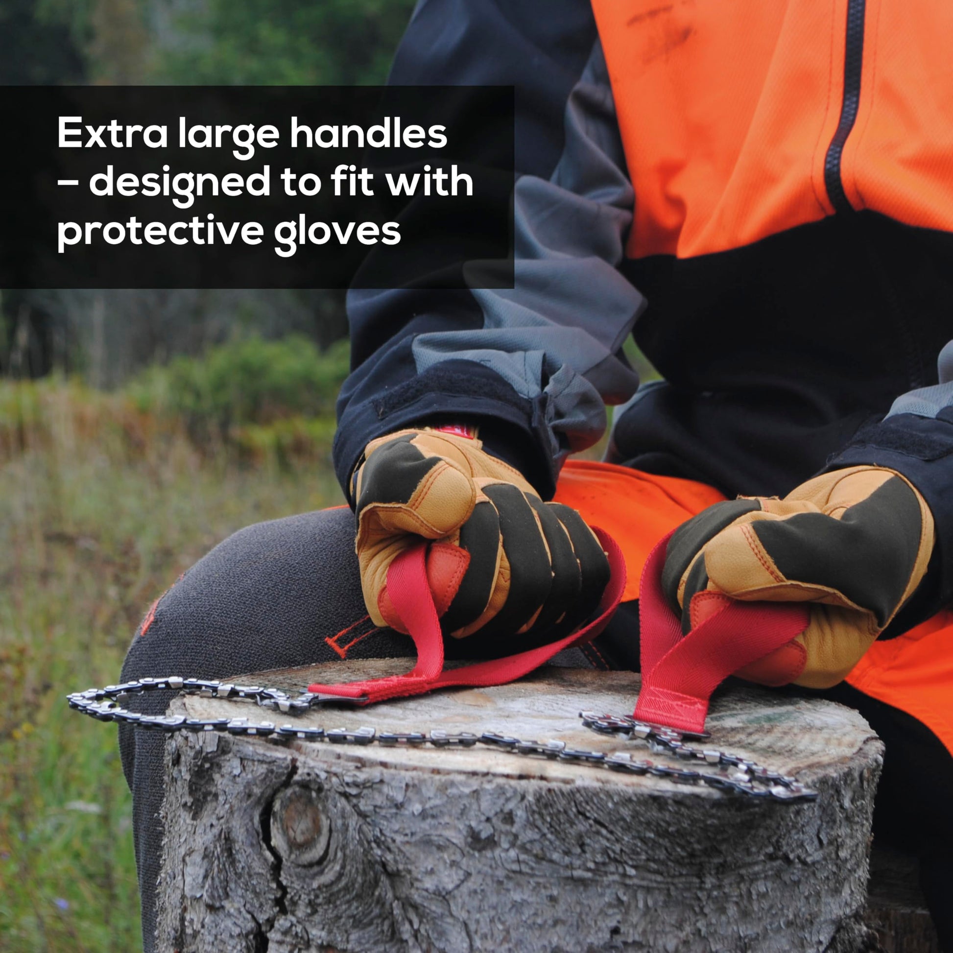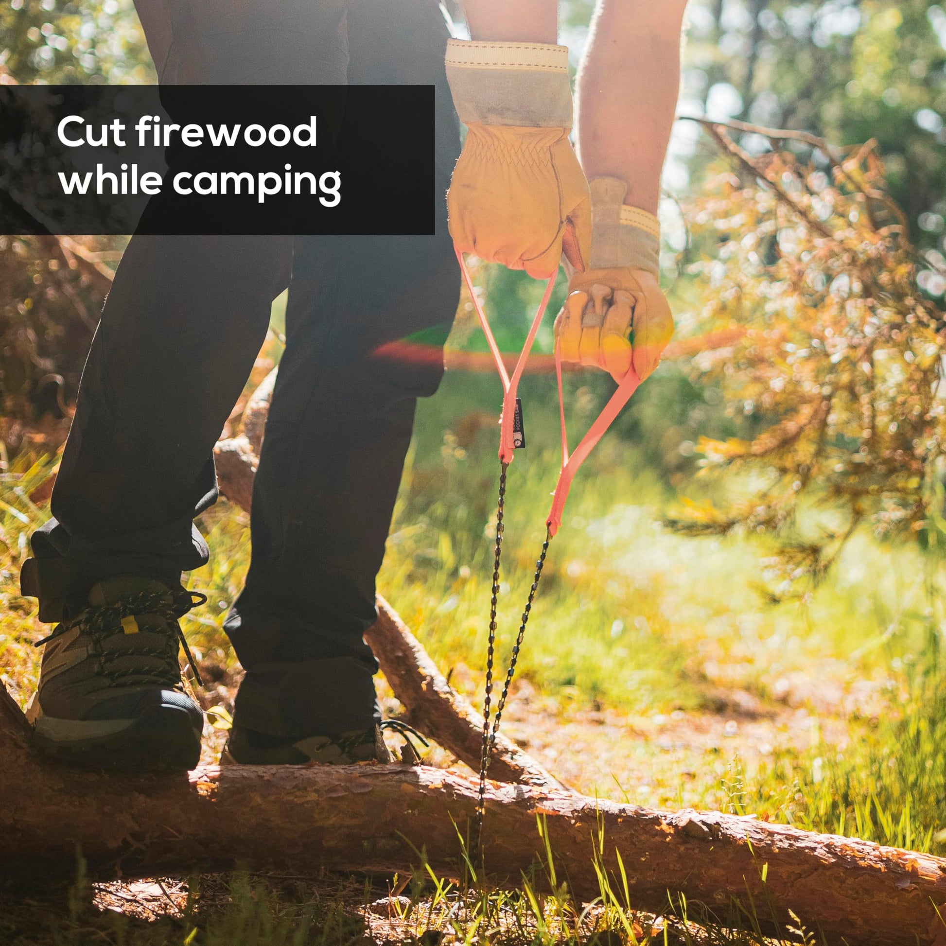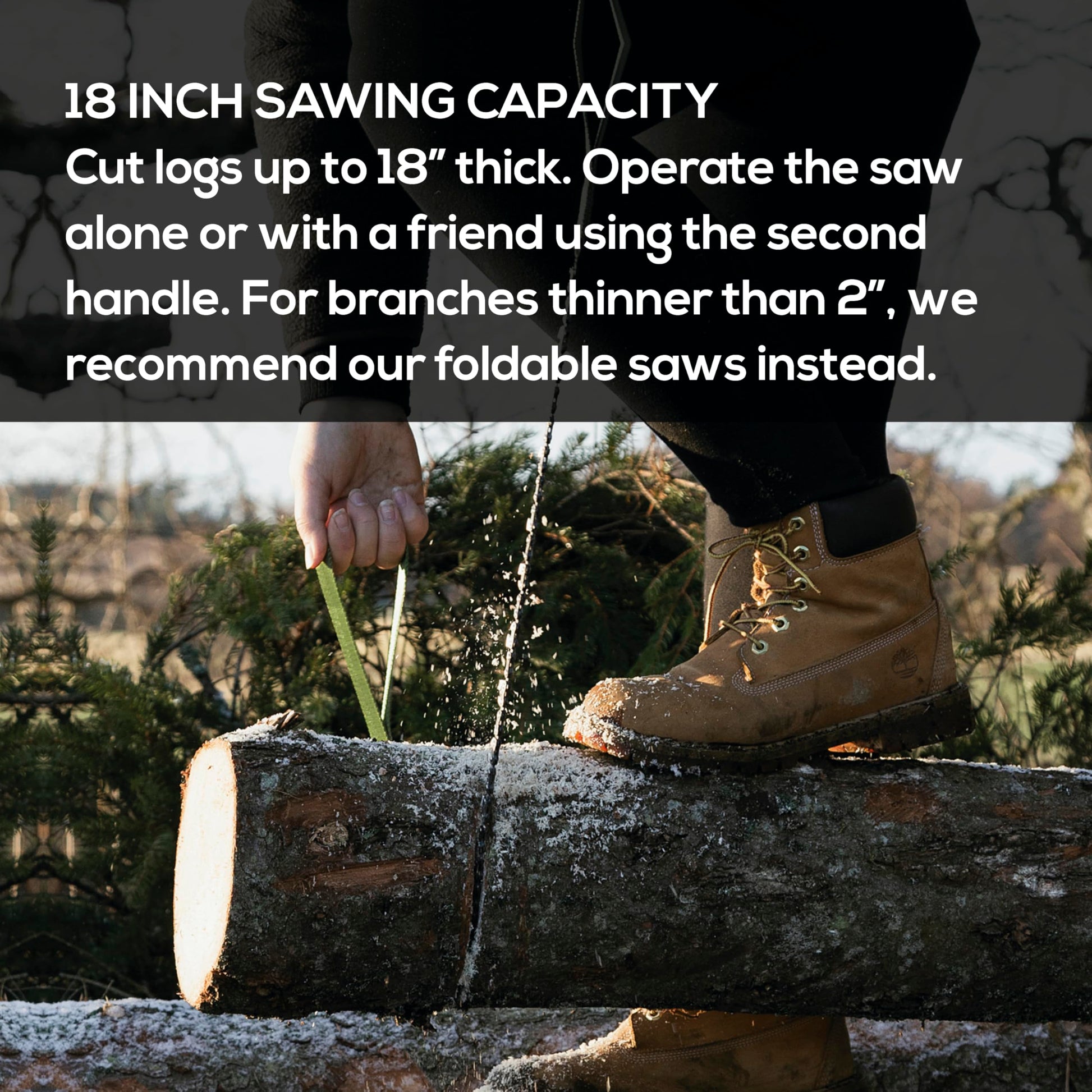 • CUT LOGS UP TO 18 INCHES THICK – While our survival pocket chainsaw can handle heavy logs, the ideal thickness is around 2-8 inches. For thinner sticks and branches, we recommend using a foldable saw. For larger logs, team up with a friend and each grab a handle for double the cutting power.
