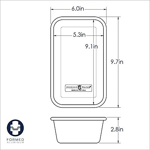 Details: Made of natural aluminum, this large loaf pan will accommodate a 1.5-pound bread loaf. Ideal for bread, meatloaf, pound cake, and more! This classic pan with its extra-high sides will never rust, and offers endless baking possibilities. Exterior pan measures 9.7 x 6 x 2.8 inches. See the image for more pan measurement details. Proudly made in the USA.