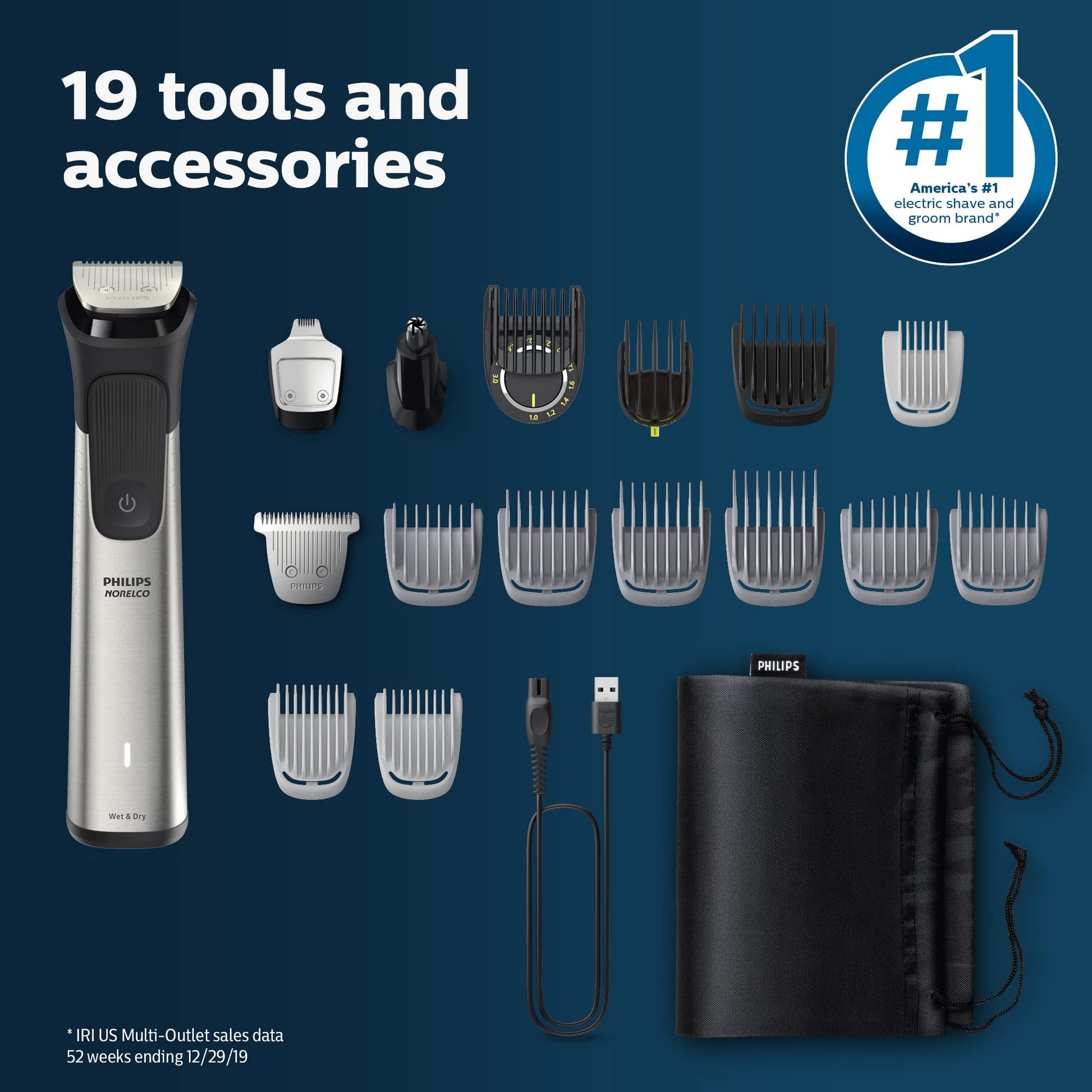 Norelco Philips Multigroom 7000 Series, All-in-One Trimmer, Beard Trimmer and Hair Clipper, 19-Piece Men's Grooming Kit for Beard, Head, Hair, Body, and Face, Soft Pouch, MG7910/49