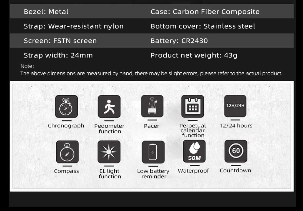 • Case Material: Carbon fiber case, stainless steel back cover, nylon knitted strap, sturdy and durable