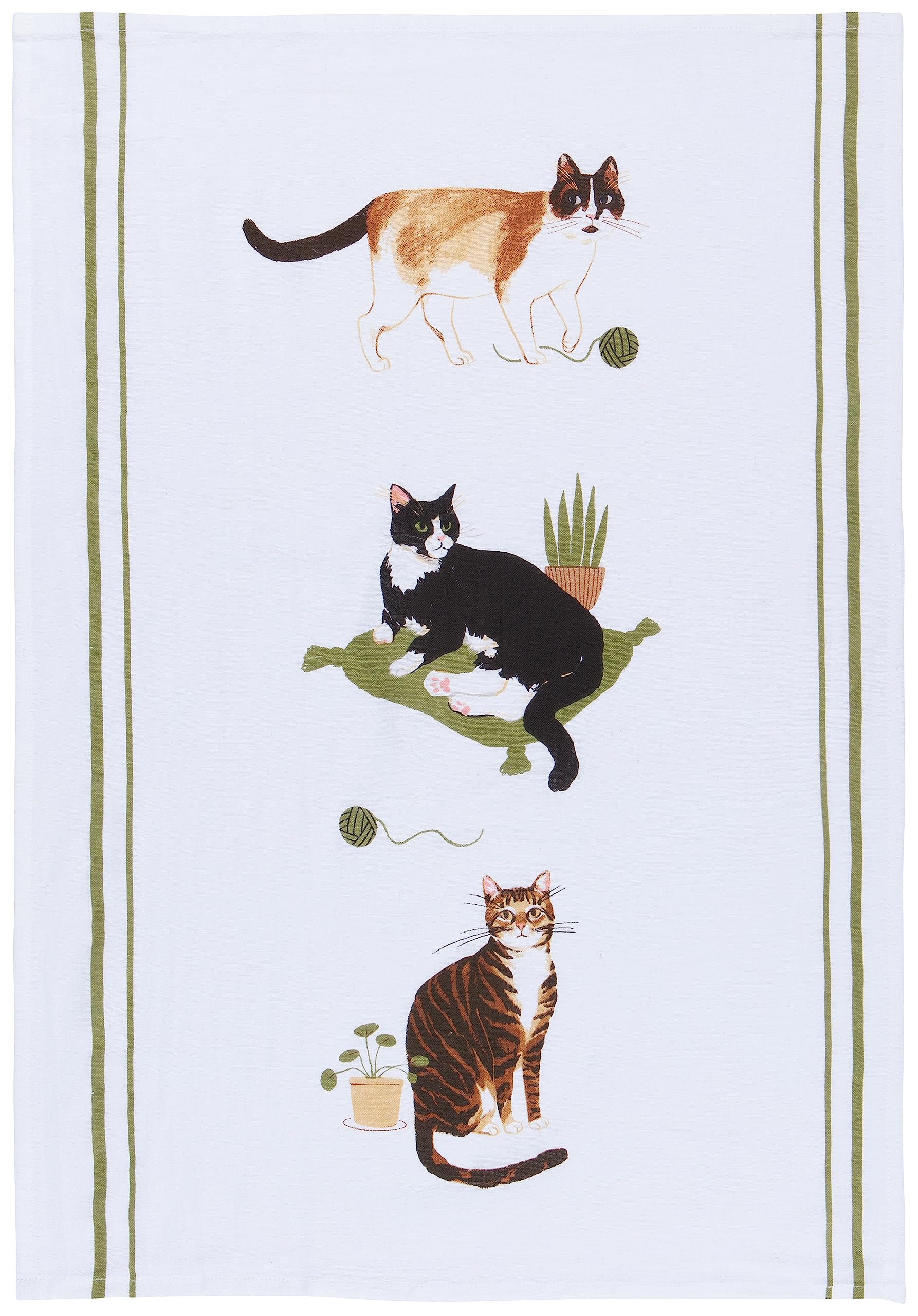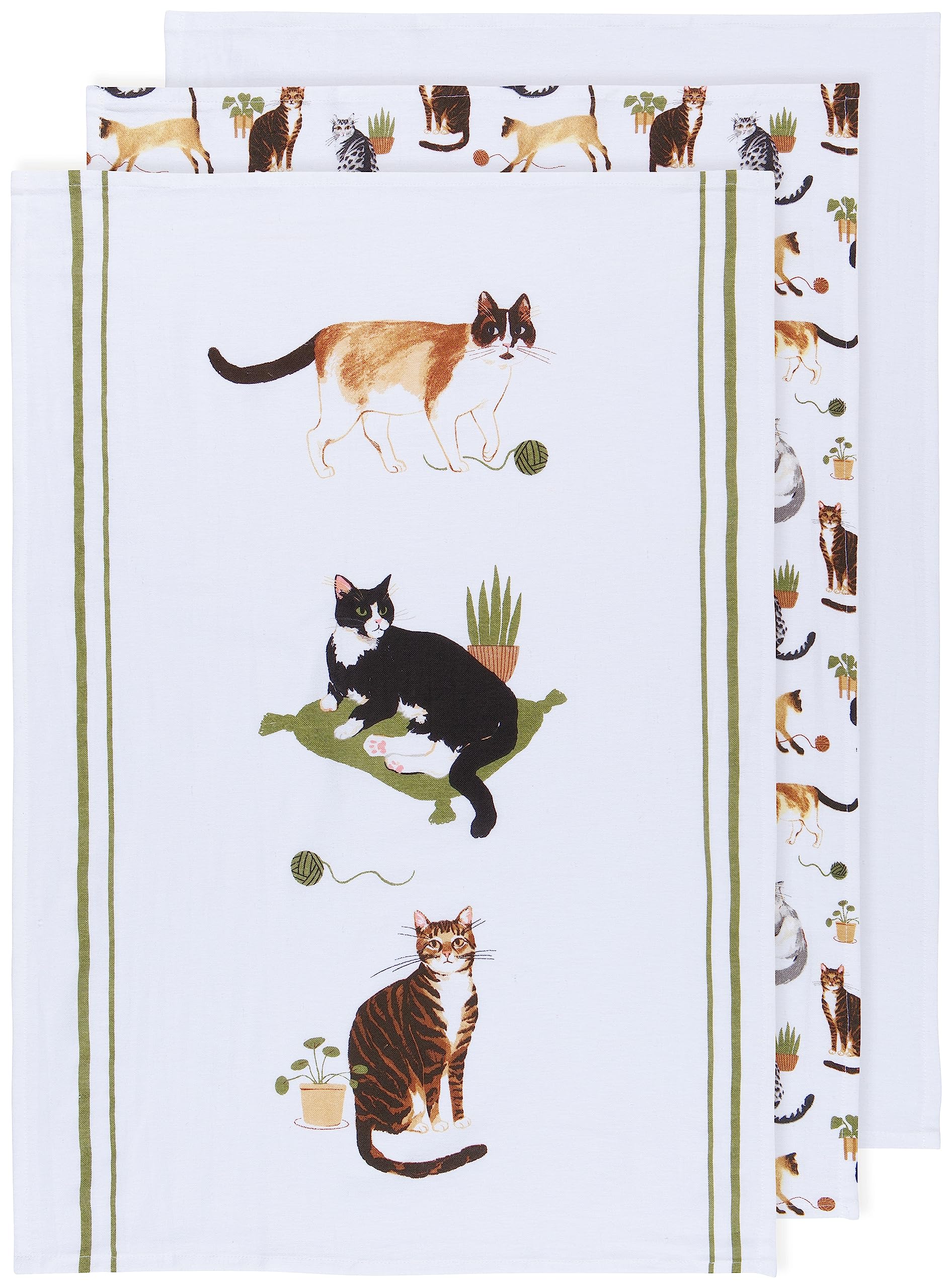 Now Designs Floursack Kitchen Towels Quick Dry Cotton Hand Towel Set, 3 Count, Cat Collective, 20 x 30 in